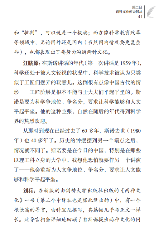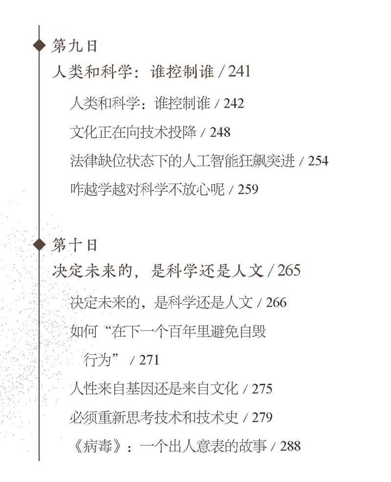 今天的文化积累已让人类拥有可以超越自身生物属性的力量,以科学探究人类学文明的新阶段已经到来。而各种文化的贯通融合,更关乎国家的发展和人类未来。在这一重要时代背景下,《两种文化十日谈》的出版便有了独特意义。