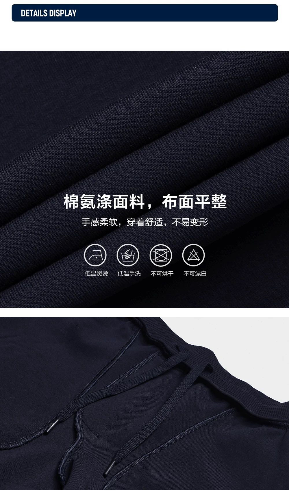 面料:78%棉+12%氨纶+10%聚酯纤维