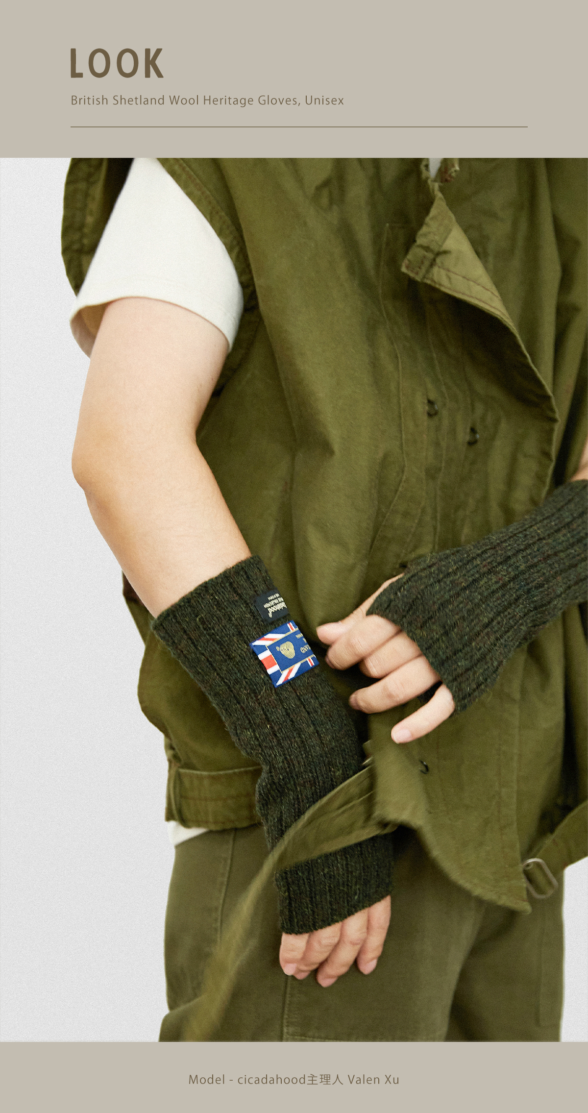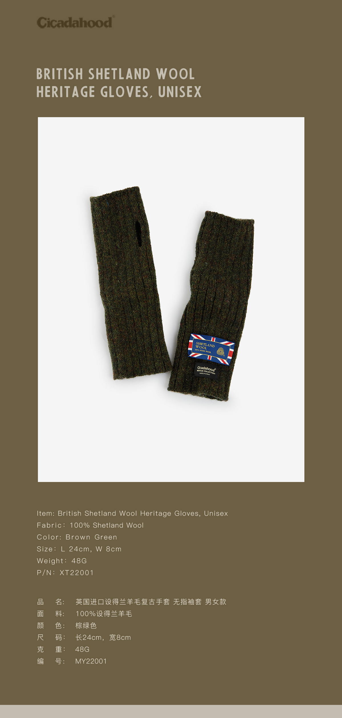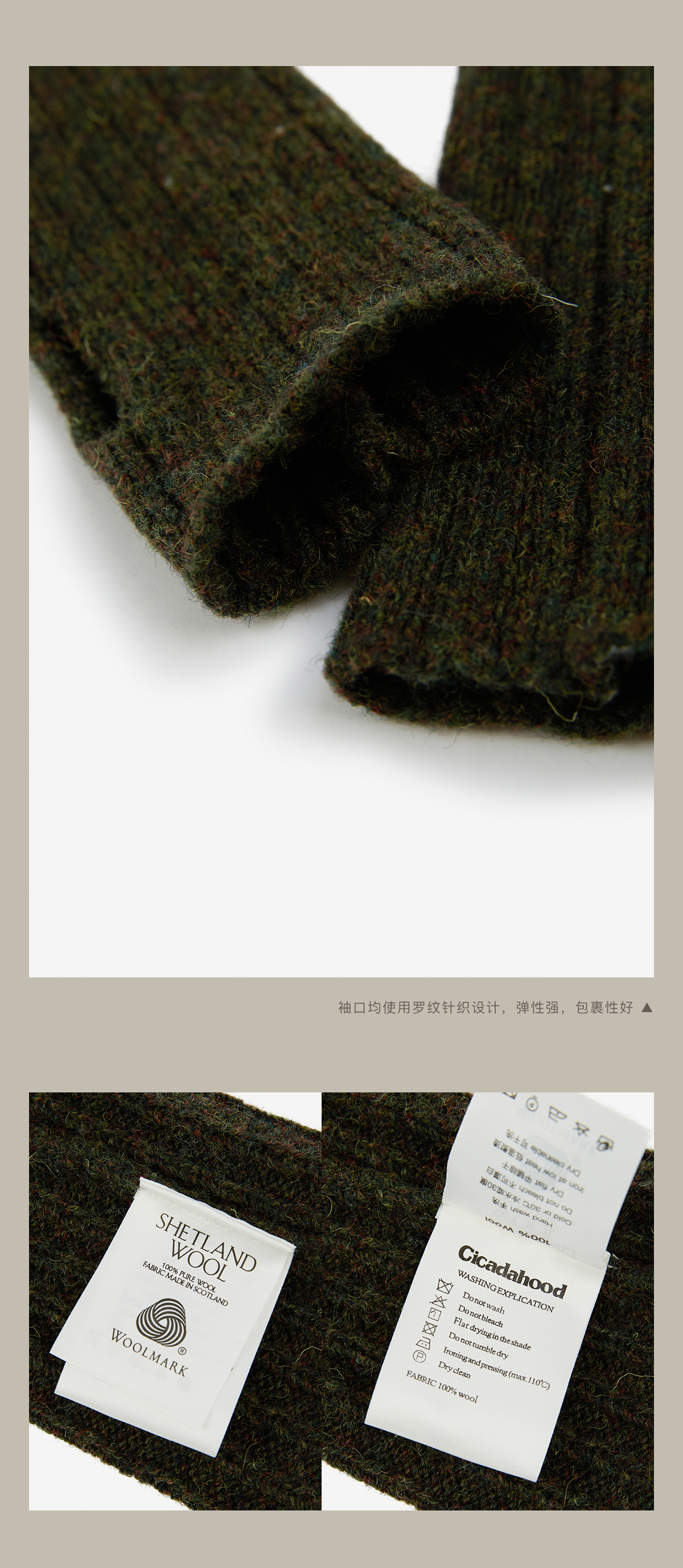 Cicadahood英国进口设得兰羊毛 复古手套 无指袖套 男女款