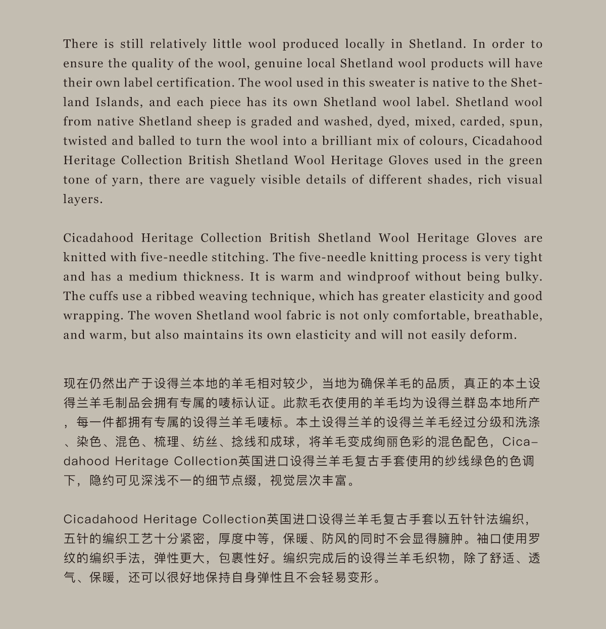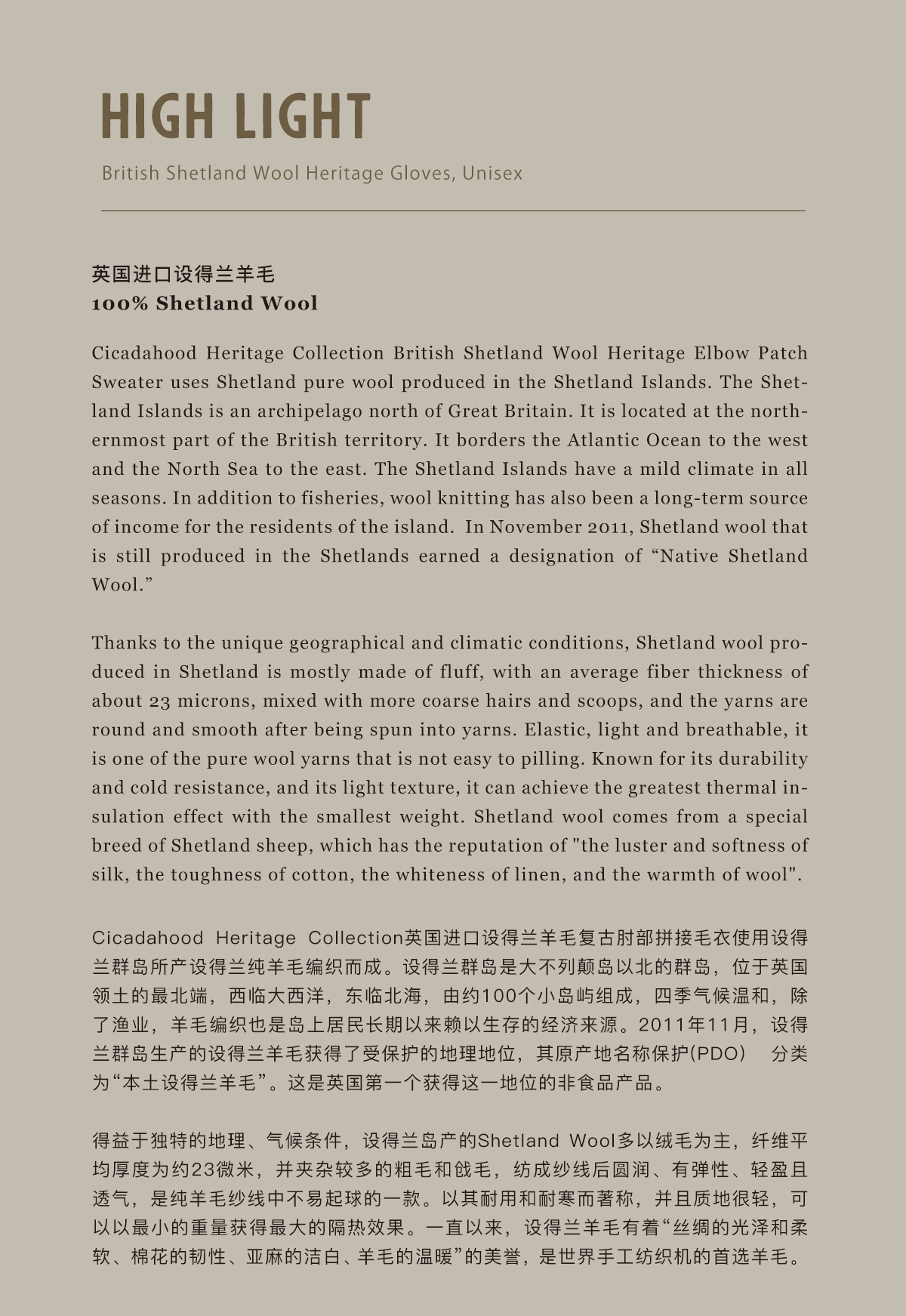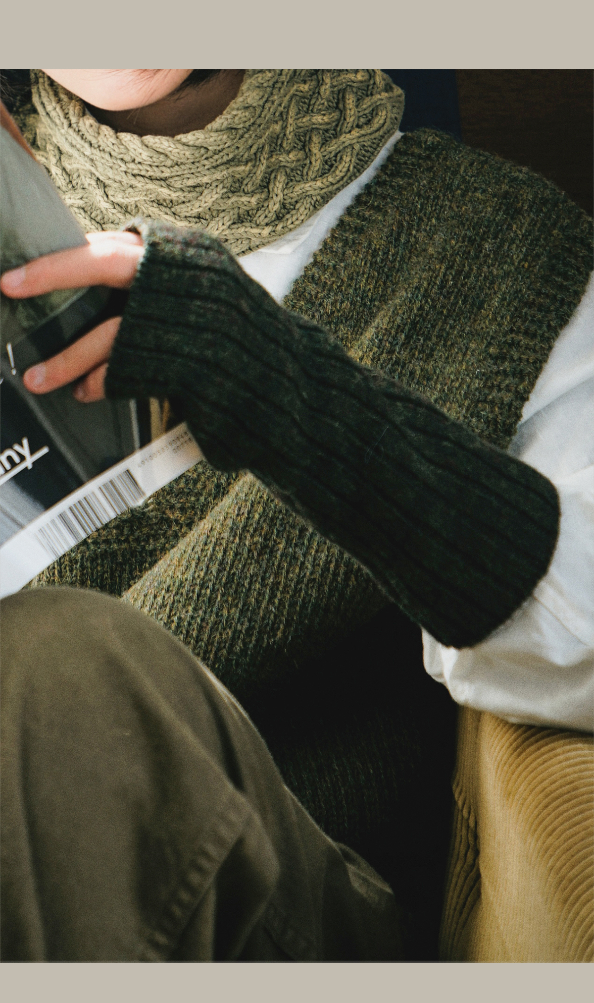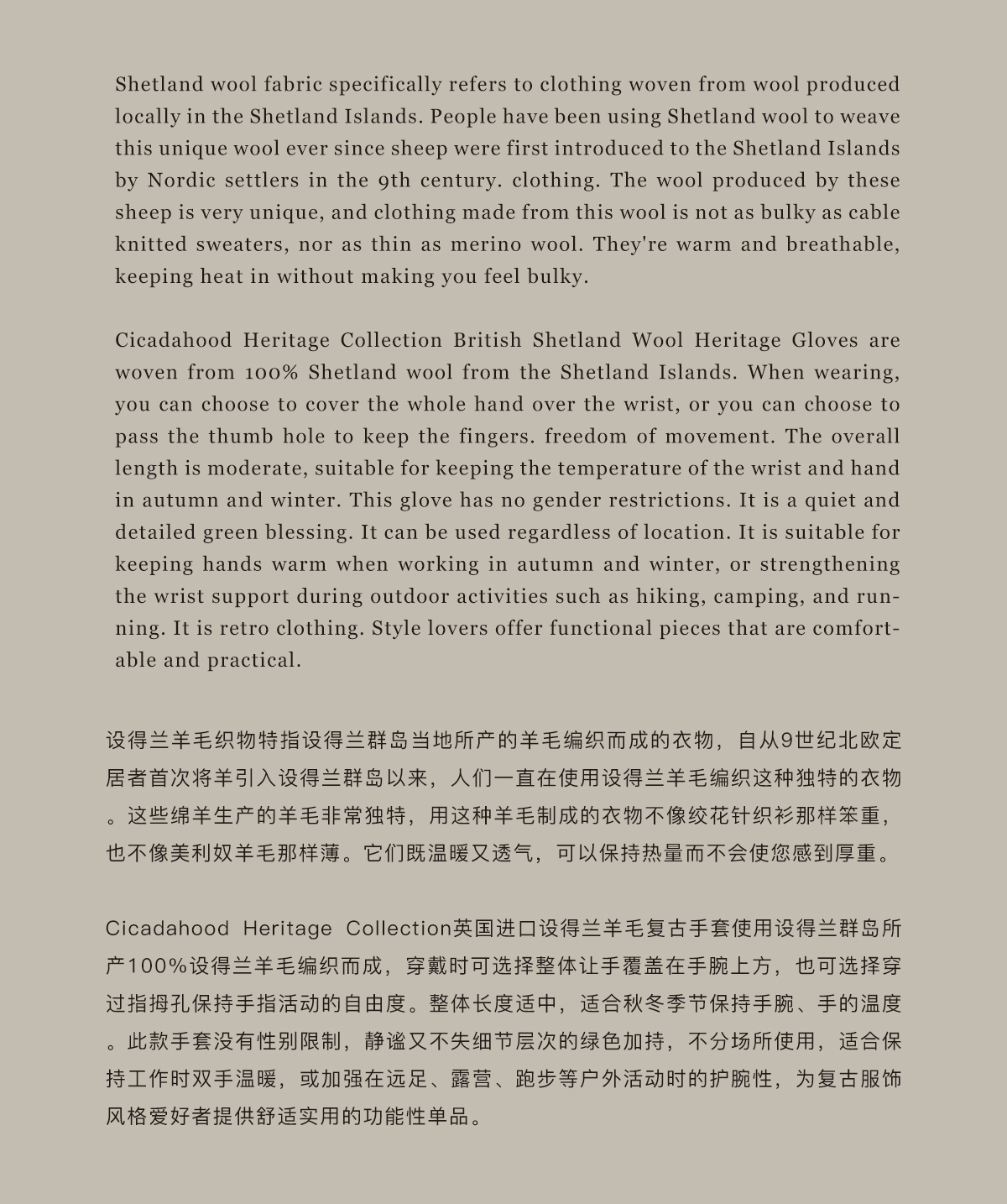 Cicadahood英国进口设得兰羊毛 复古手套 无指袖套 男女款