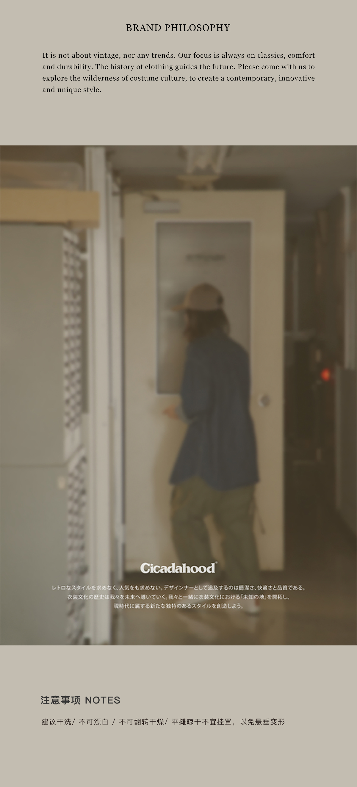 - 不局限于复古,更不会逐流于潮流,我们想挣脱快世界,关注永恒的经典、舒适和耐用,用对物质的极致追求,在荒芜之地饱满我们的内心,缓慢地得到一样东西是一种恩赐,品位从来不是速度与激情的产物。