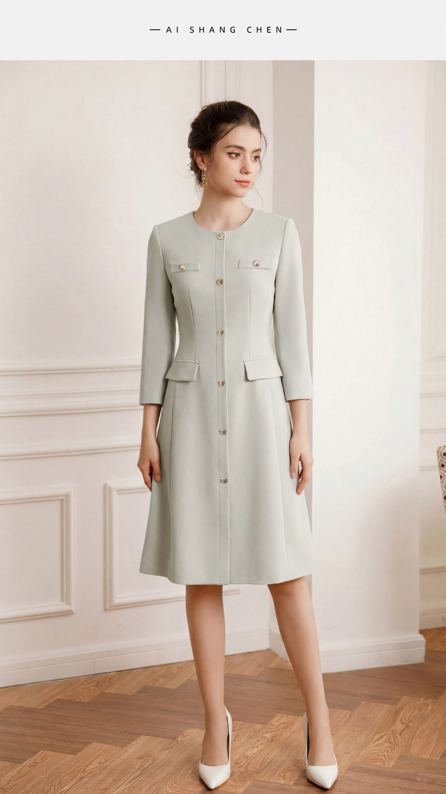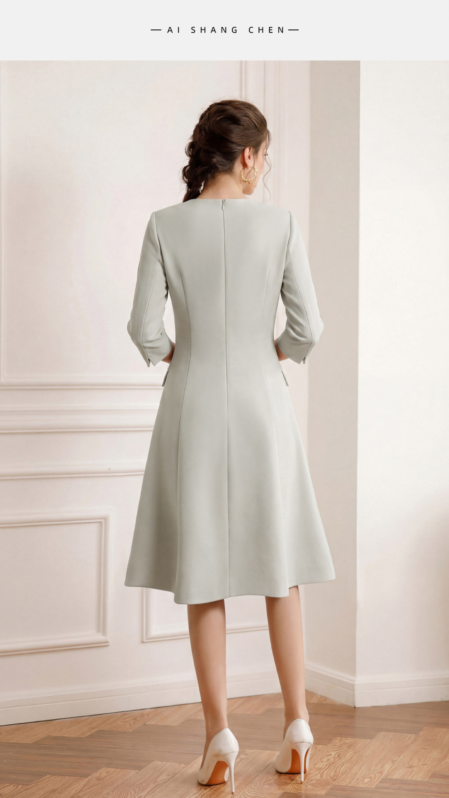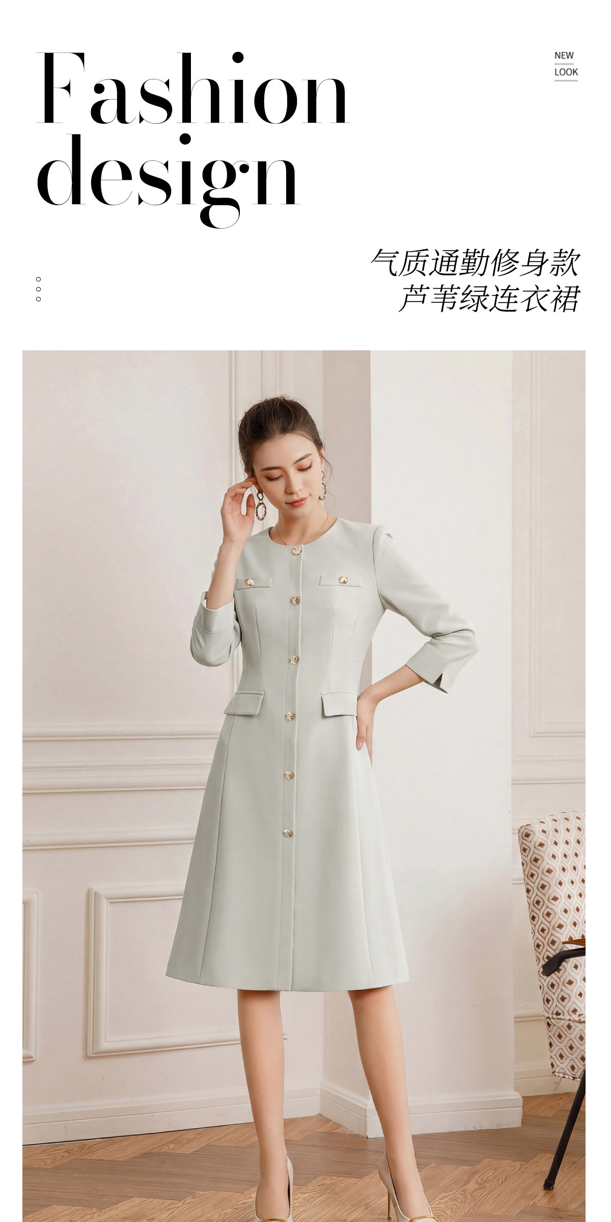 艾尚臣氧气少女治愈芦苇绿连衣裙女七分袖中长款显白气质A裙通勤