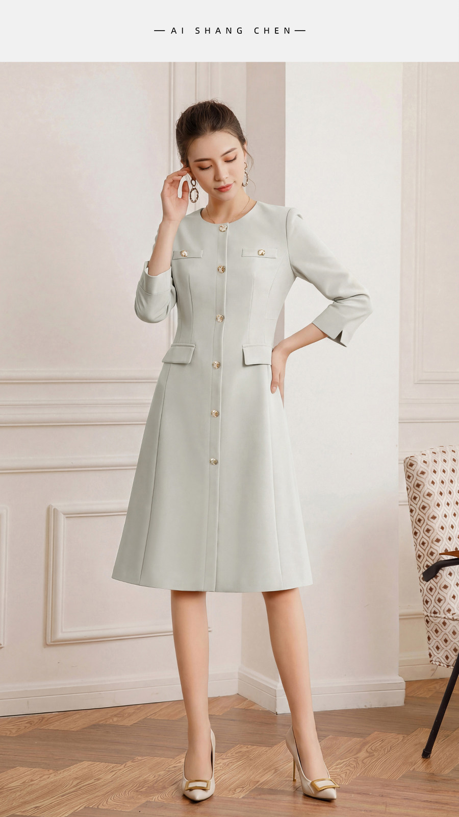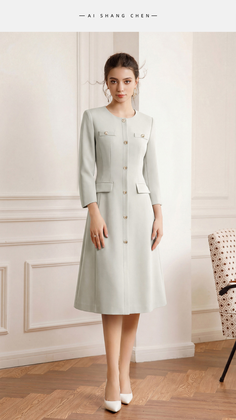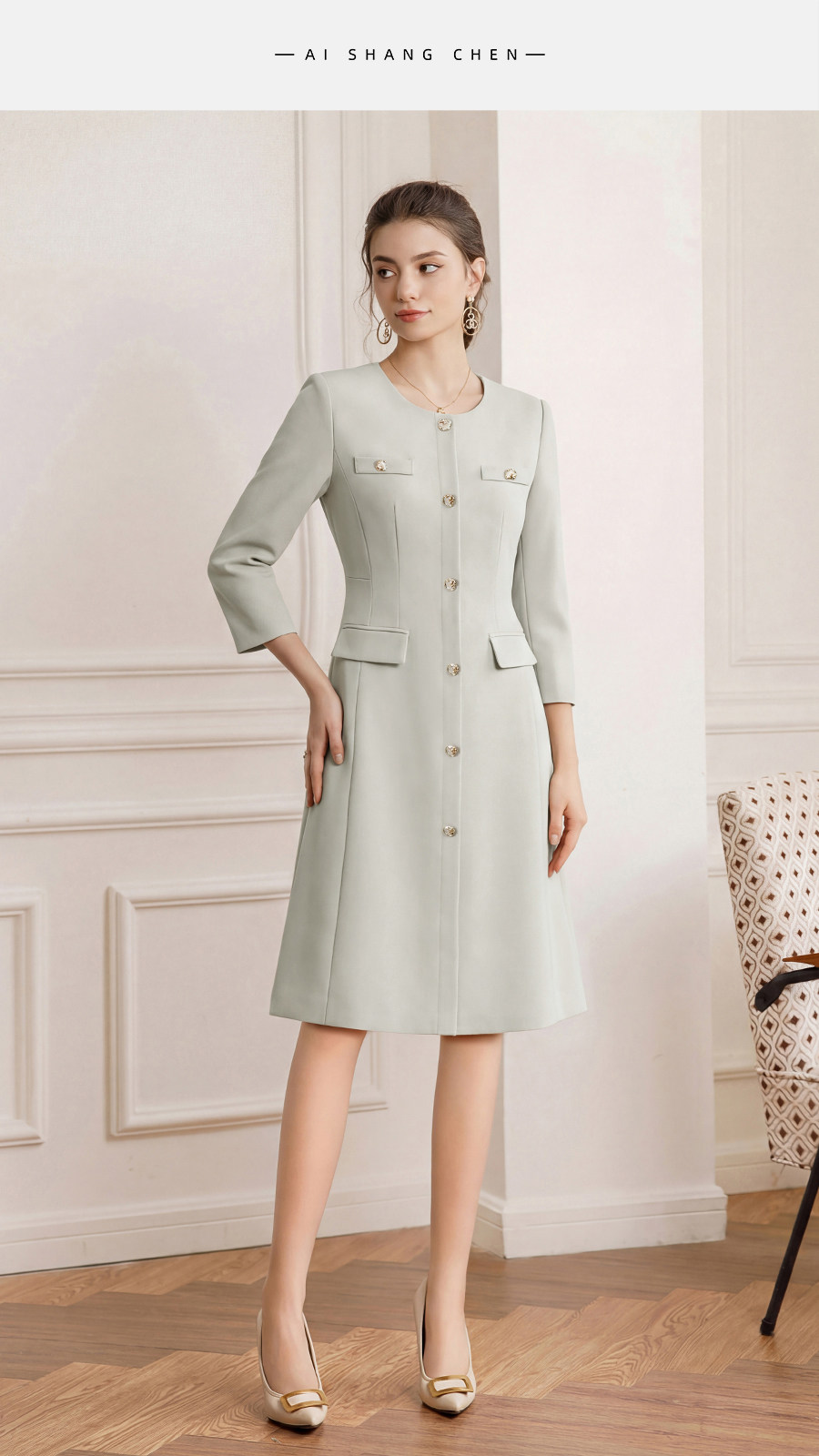 艾尚臣氧气少女治愈芦苇绿连衣裙女七分袖中长款显白气质A裙通勤