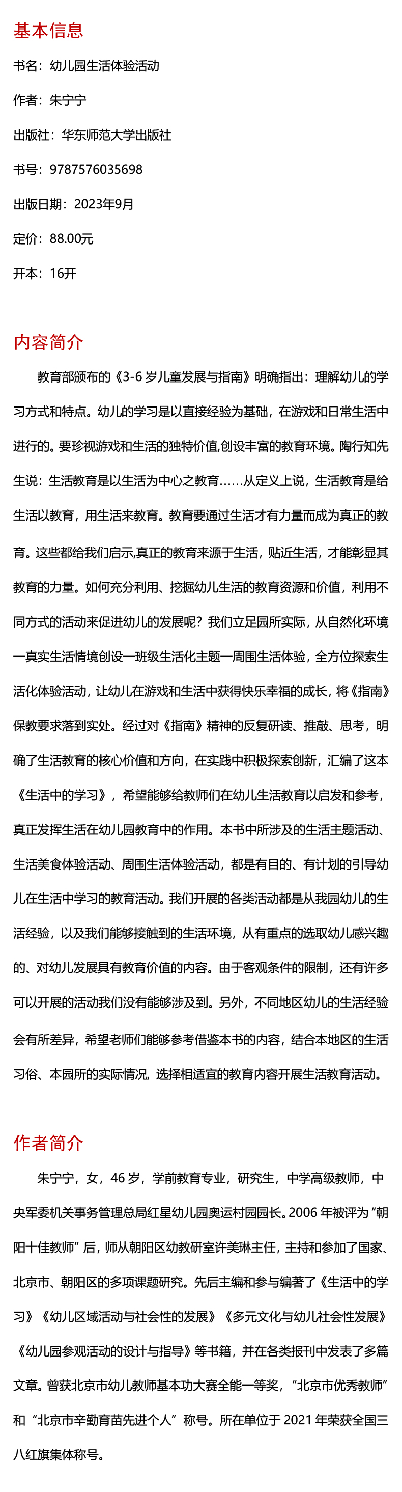 幼儿园生活体验活动 朱宁宁 学前教育 幼儿保教