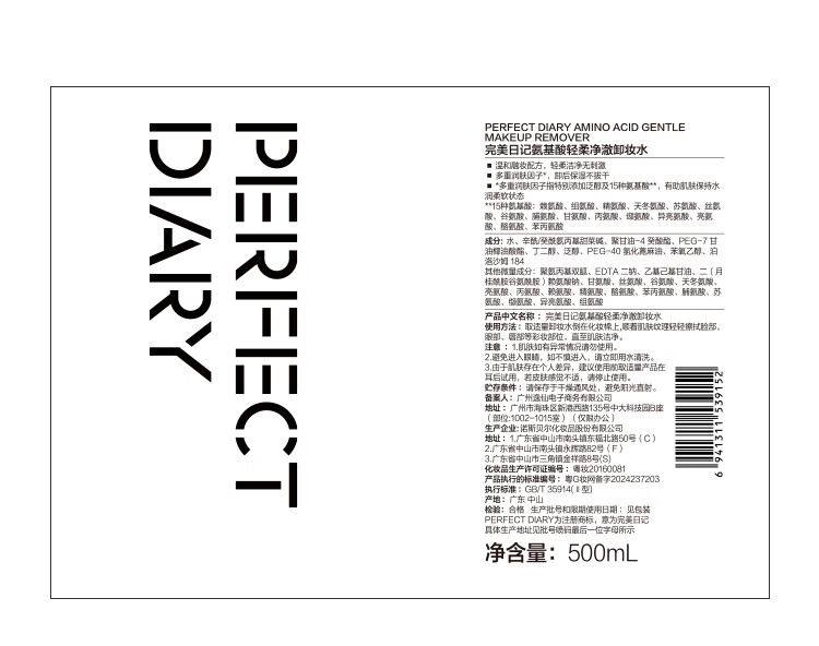 完美日记氨基酸轻柔净澈卸妆水 500ml
