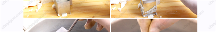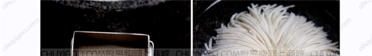 切出的每根豆腐丝像牙签一样细