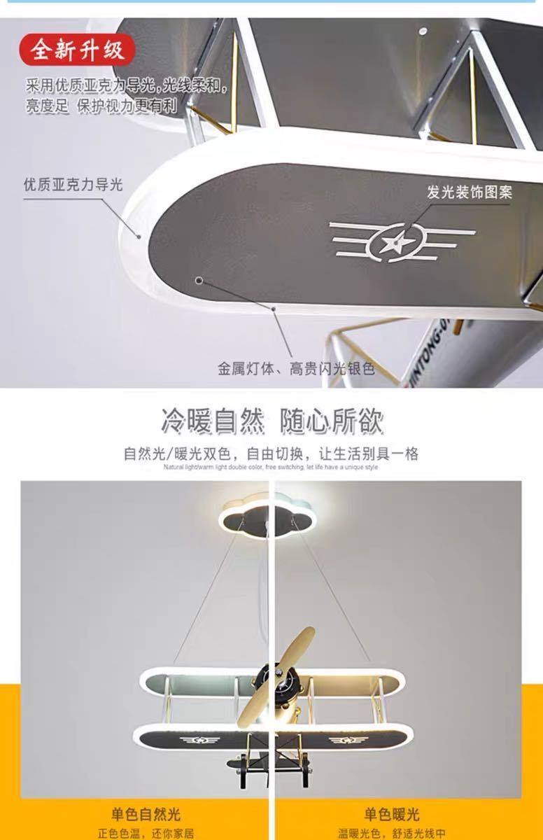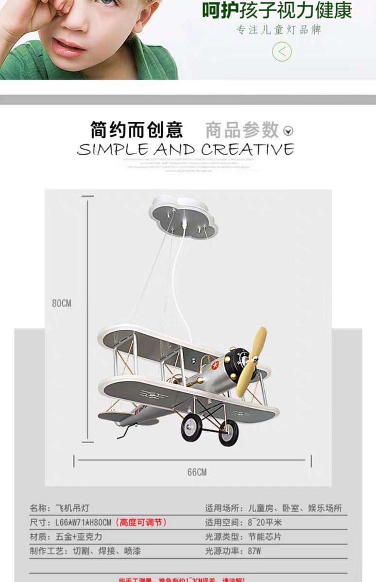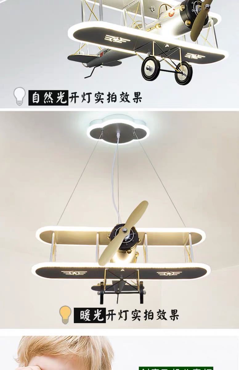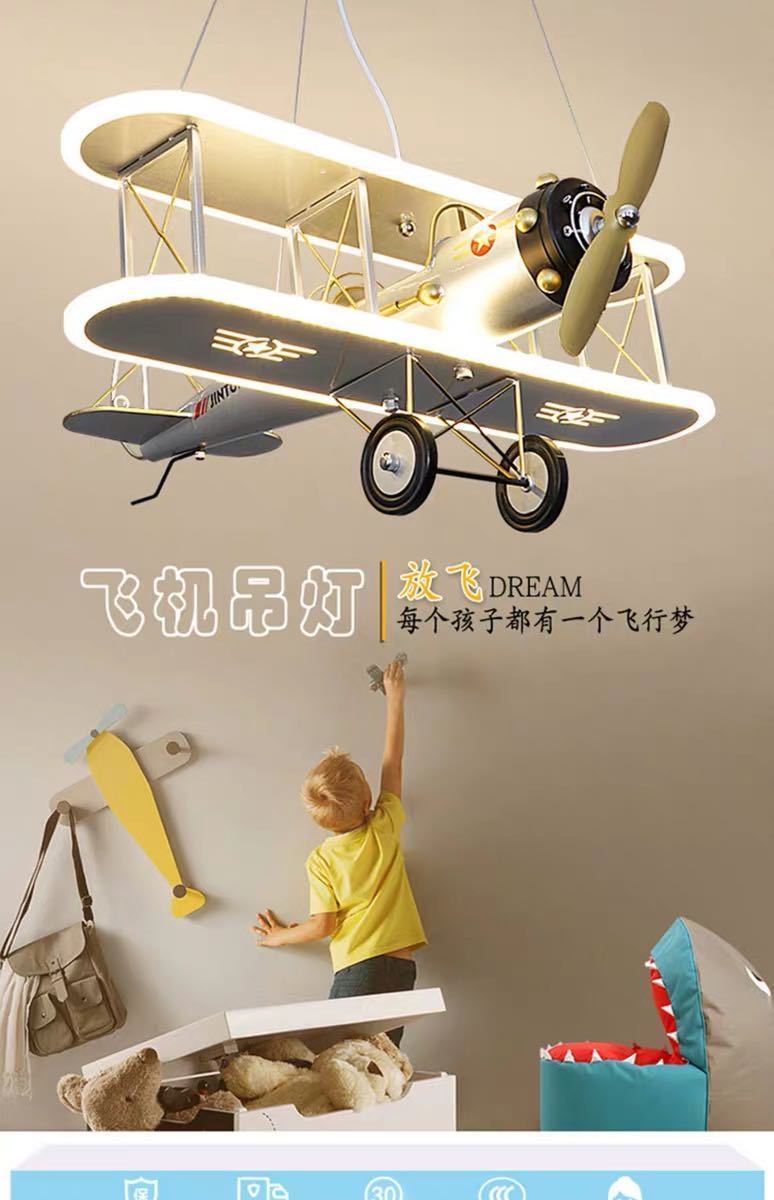 创意led儿童飞机灯男孩卧室房间灯个性现代时尚简约卡通吊灯灯具