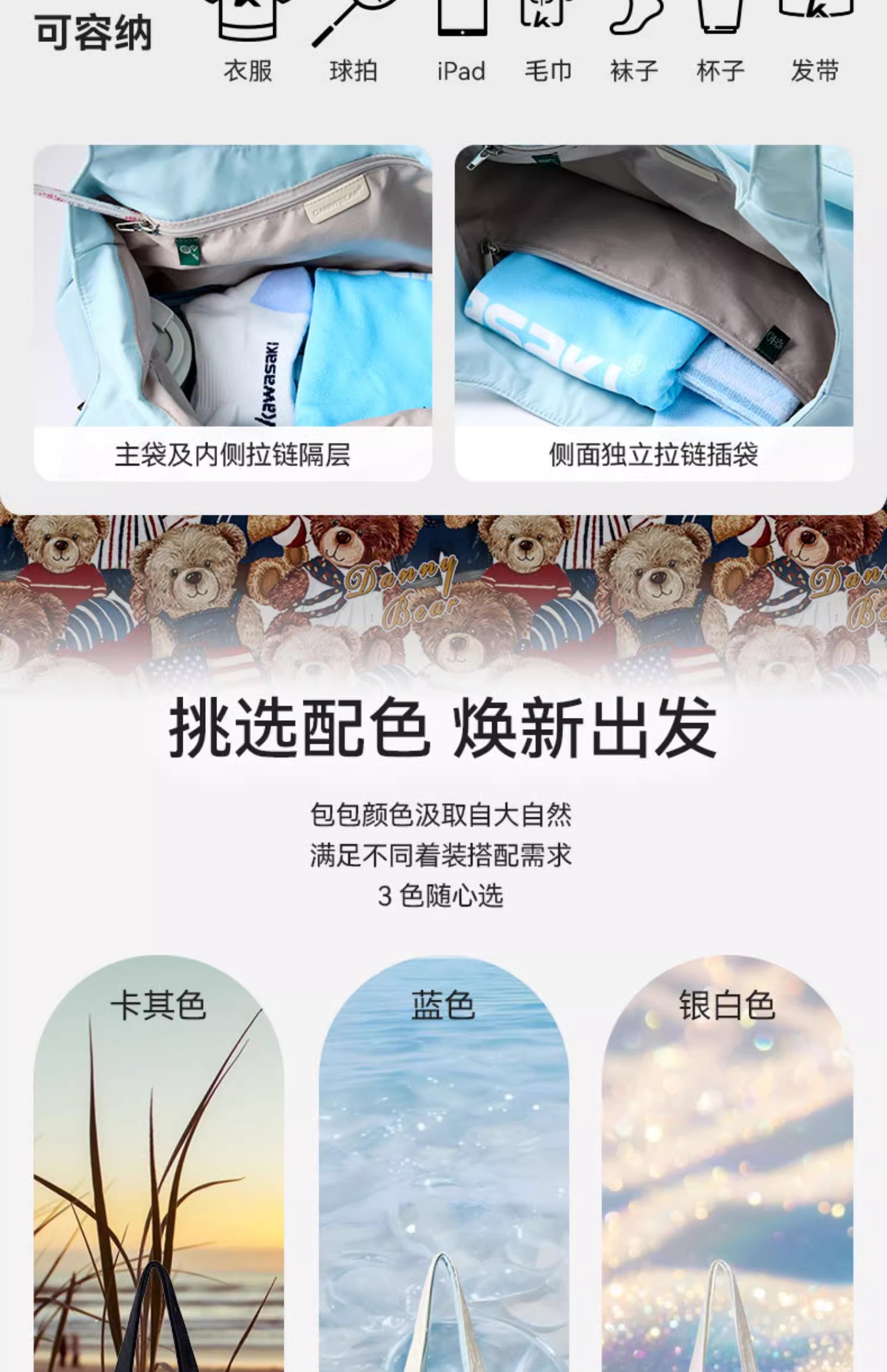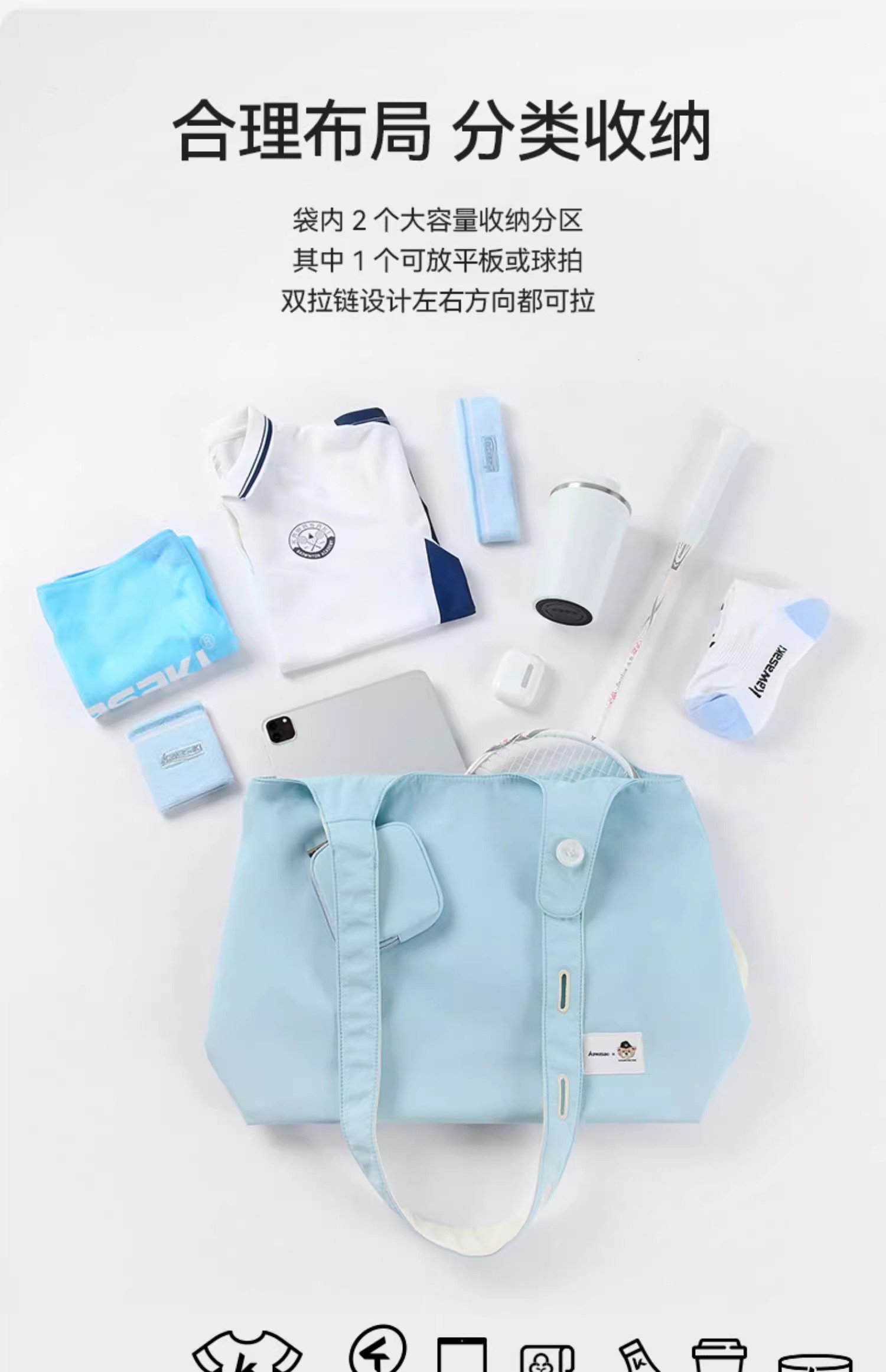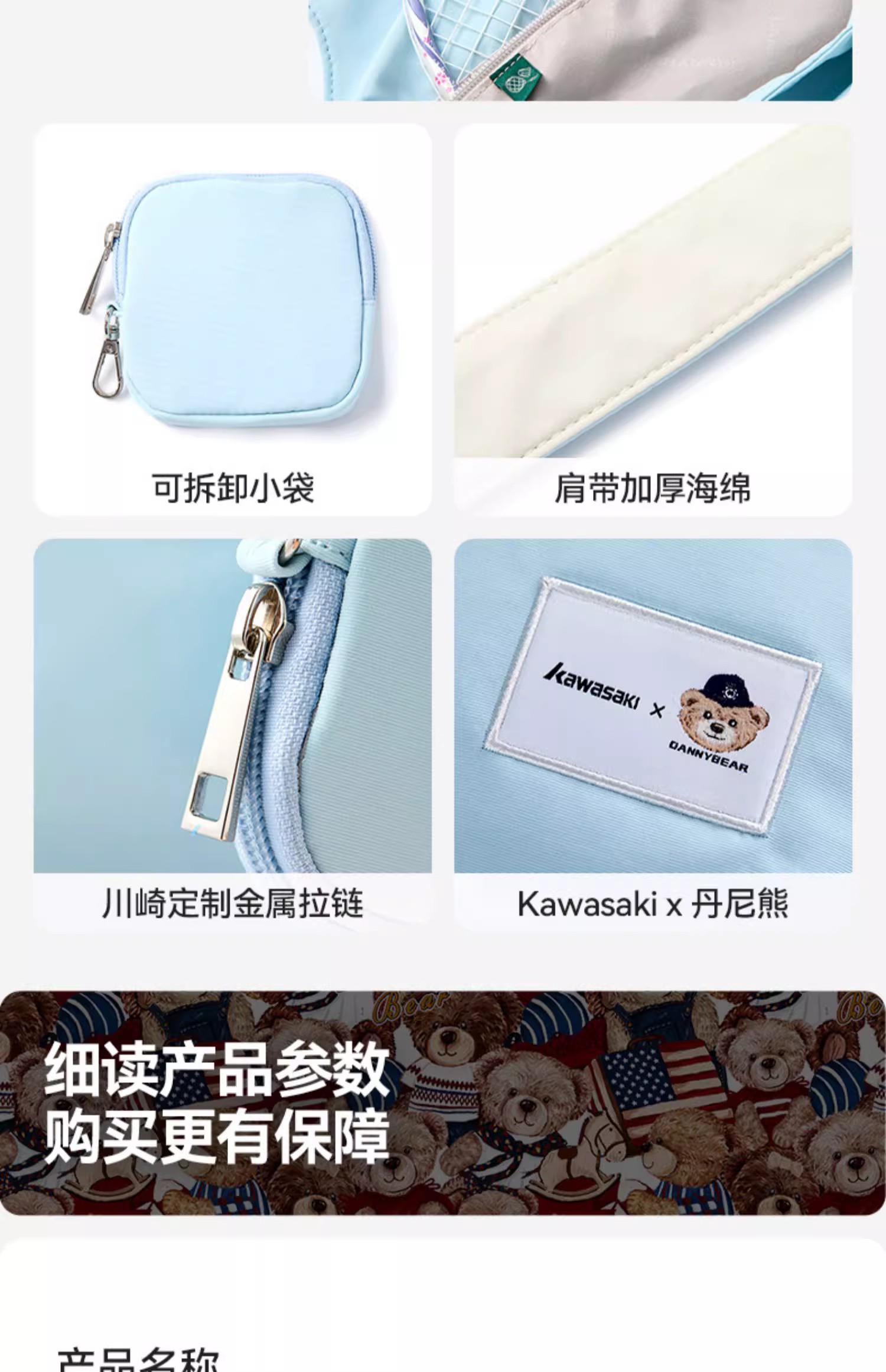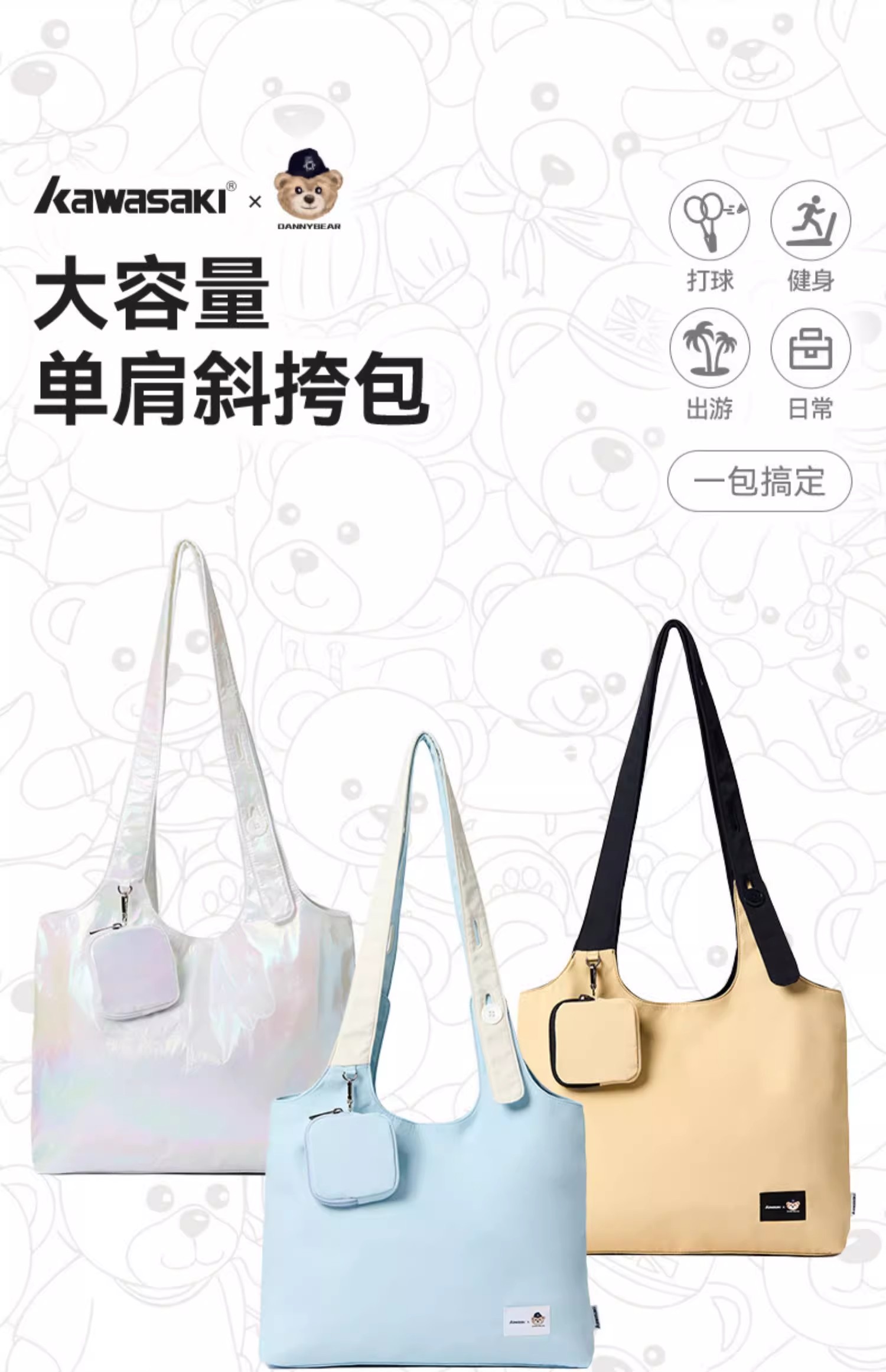 川崎 羽毛球包 丹尼熊联名系列 单肩斜挎包 K2G00-B8139 B8142