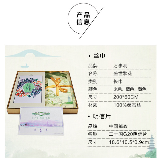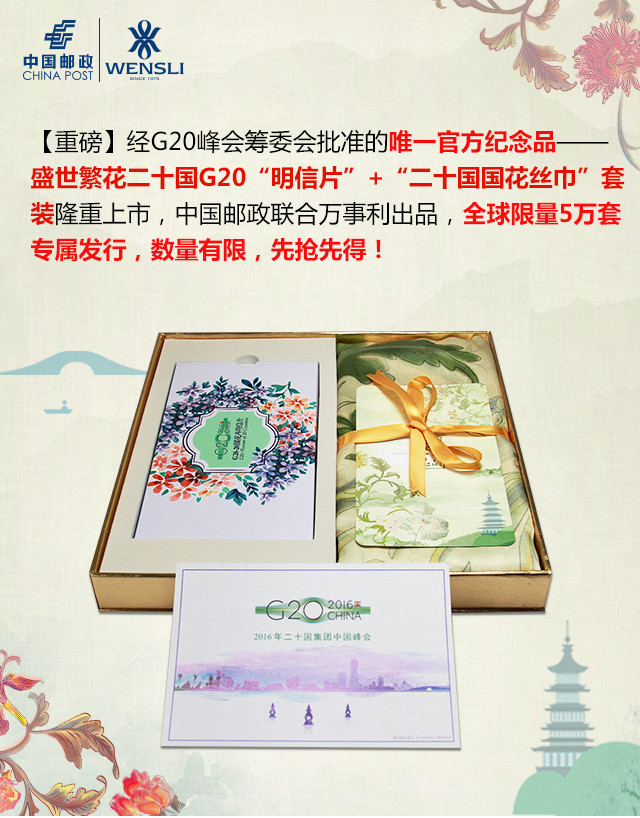 (永久下架)盛世繁花二十国G20“明信片”+“二十国国花丝巾”套装