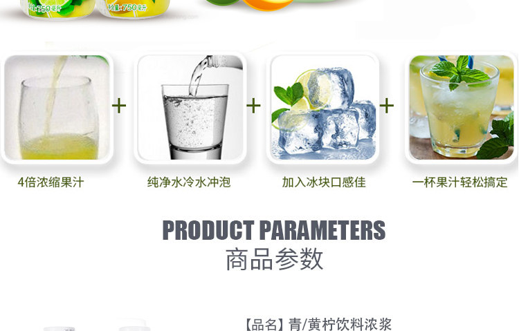屈臣氏浓缩青柠调酒鸡尾酒奶茶专用饮料浓浆750ml/瓶