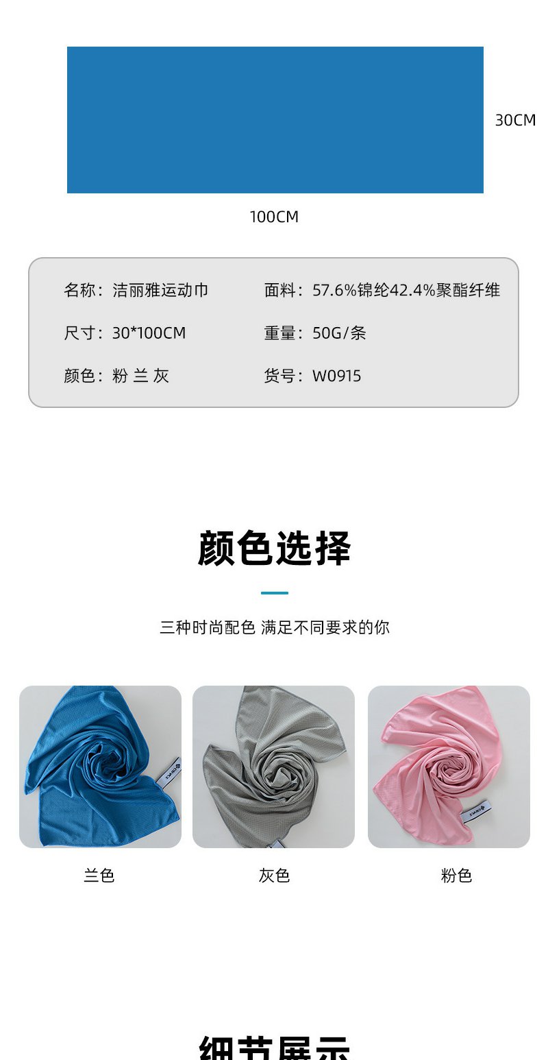 洁丽雅冷感运动毛巾健身房速干冰感吸汗w0915 30*100