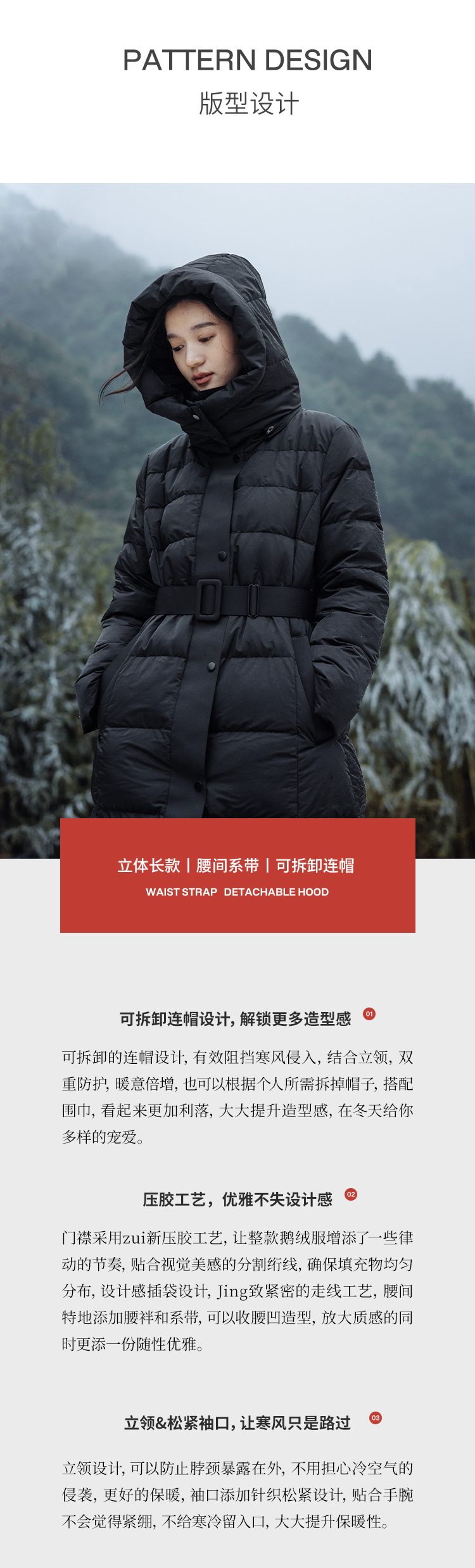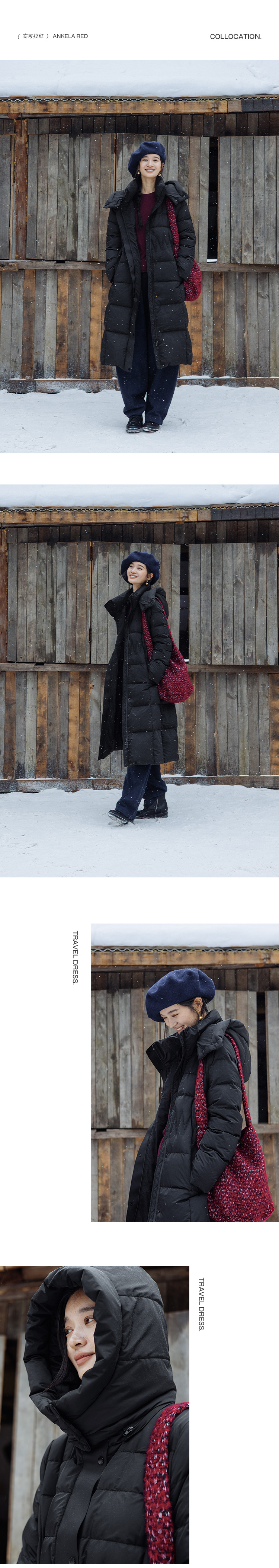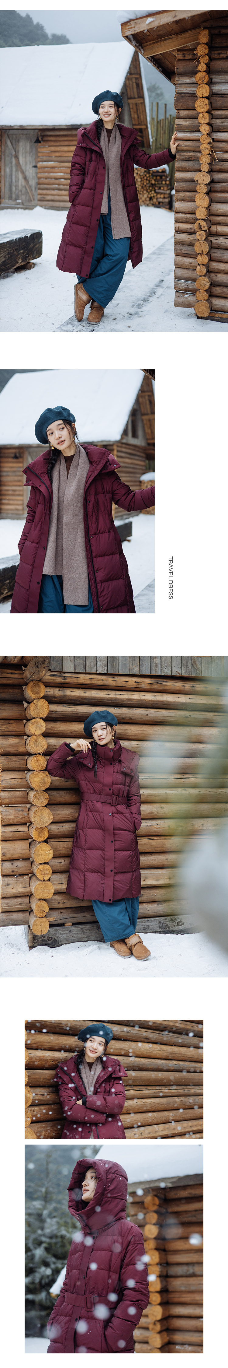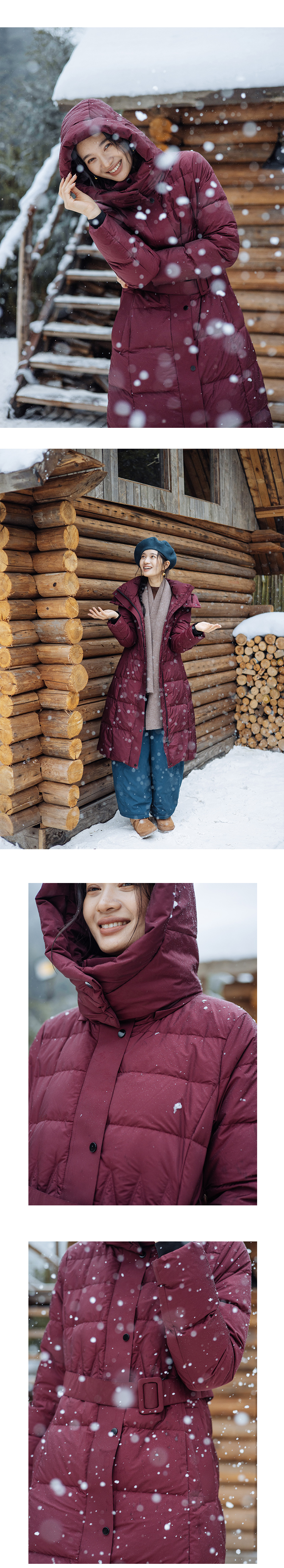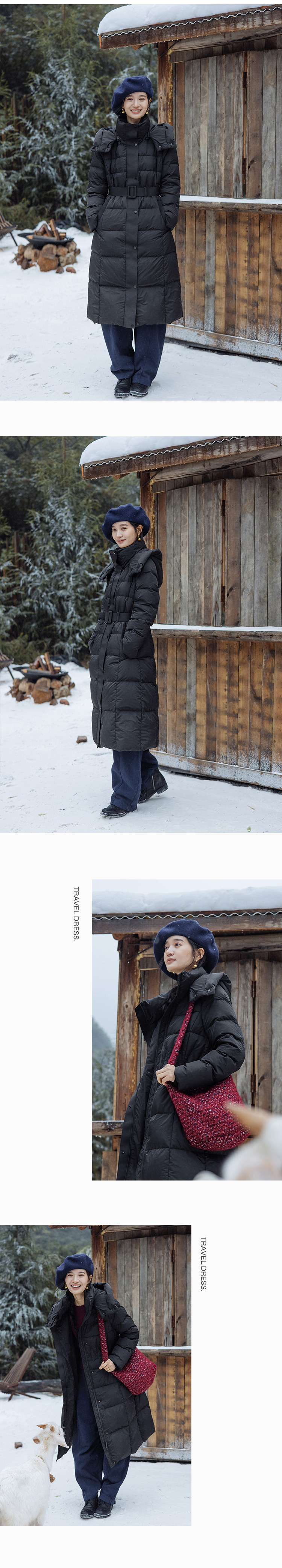 绽放886朵/飒美羽绒服90白鹅绒女系带连帽过膝长款石墨烯保暖外套