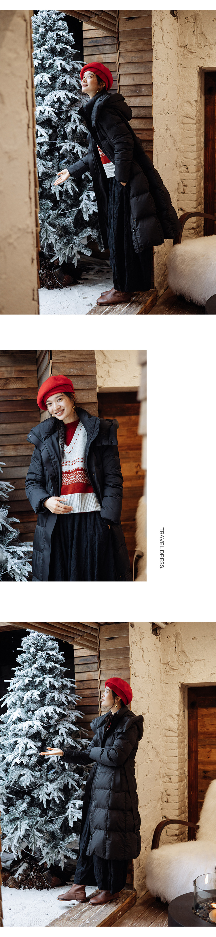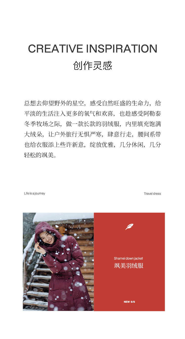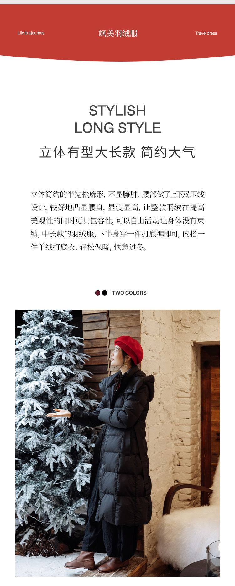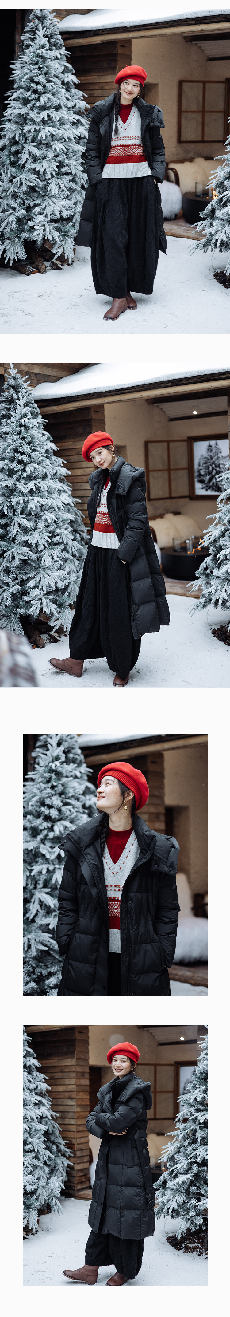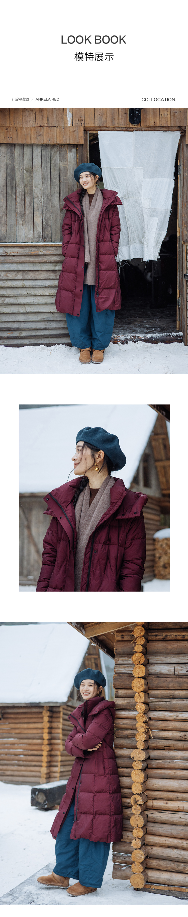 绽放886朵/飒美羽绒服90白鹅绒女系带连帽过膝长款石墨烯保暖外套