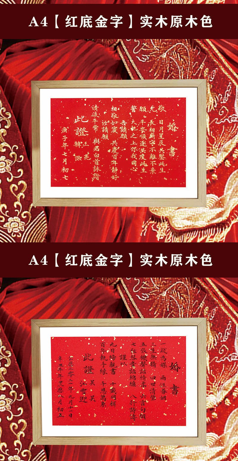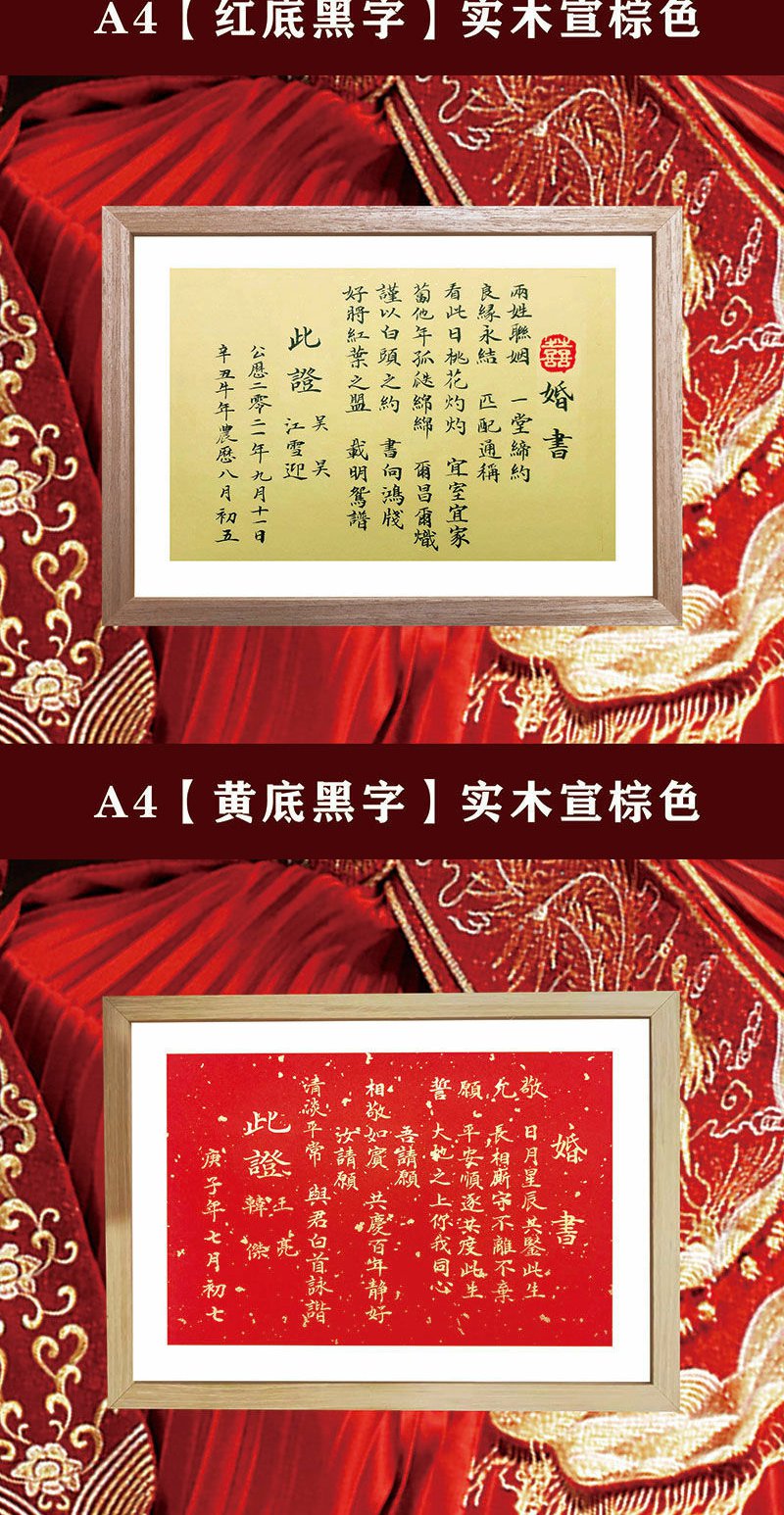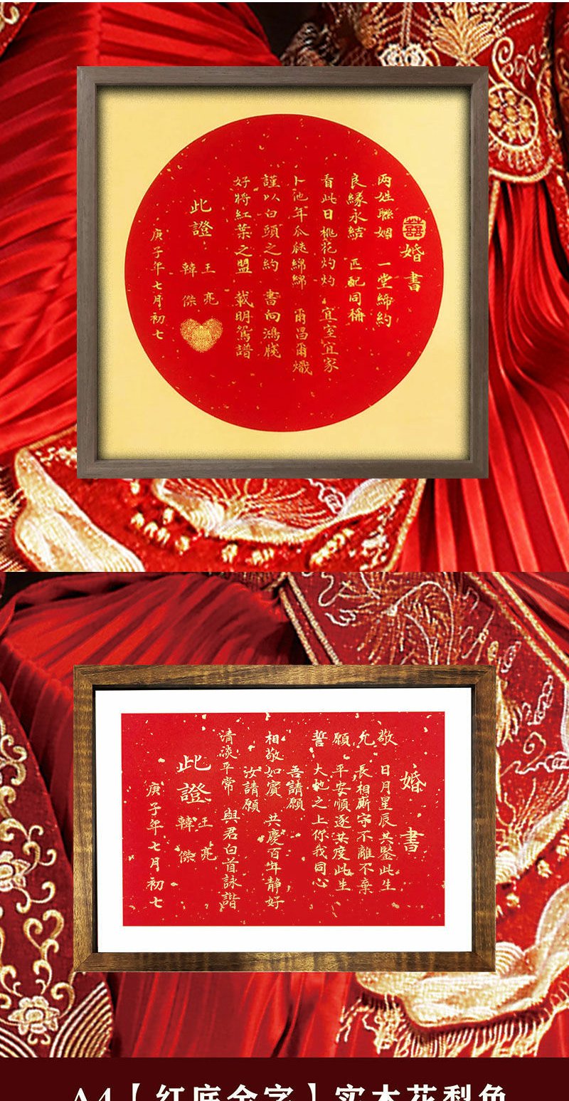 手写中式民国婚书定制实木订婚书中国风创意结婚礼物