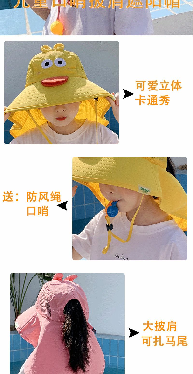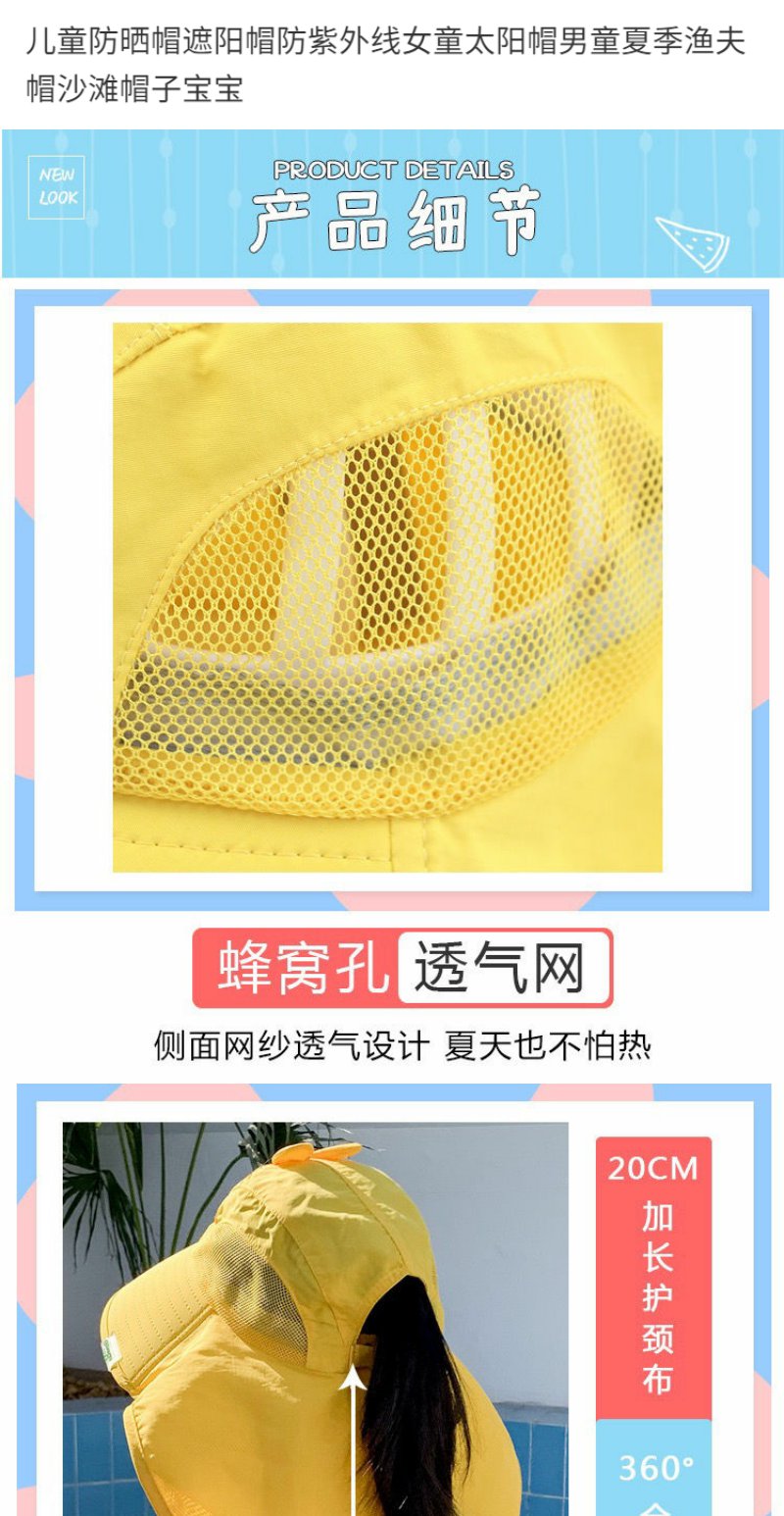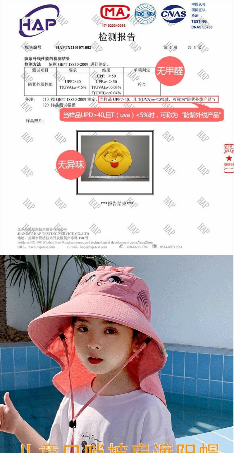 儿童防晒遮阳帽子2-5-10防紫外线女童太阳帽男童夏季渔夫帽沙滩帽