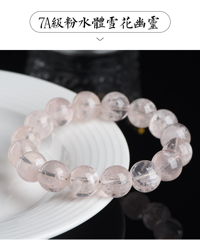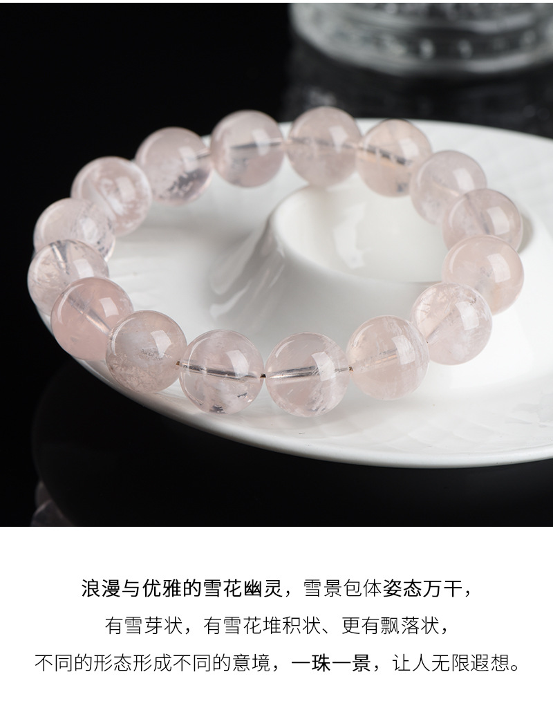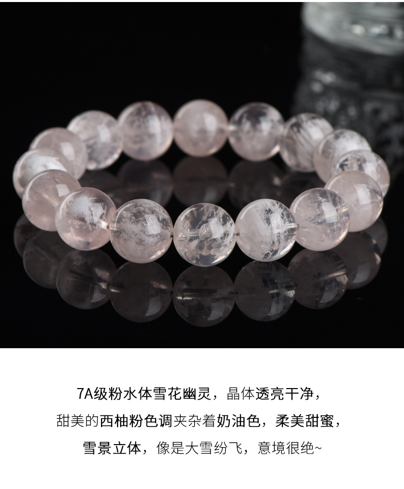 惊艳唯美!高端7A级天然冰种粉色幽灵手串 招正财运 稀有雪花幽灵 雪景般浪漫