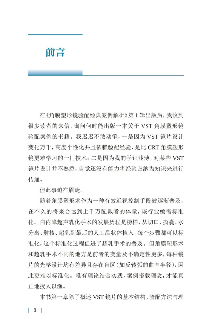 1.《角膜塑形镜验配经典案例解析 第1辑》姊妹篇,详细解读VST角膜塑形镜验配流程和思路。两本书共同阐释了两种临床常见设计的角膜塑形镜验配的完整体系。内容互为补充。