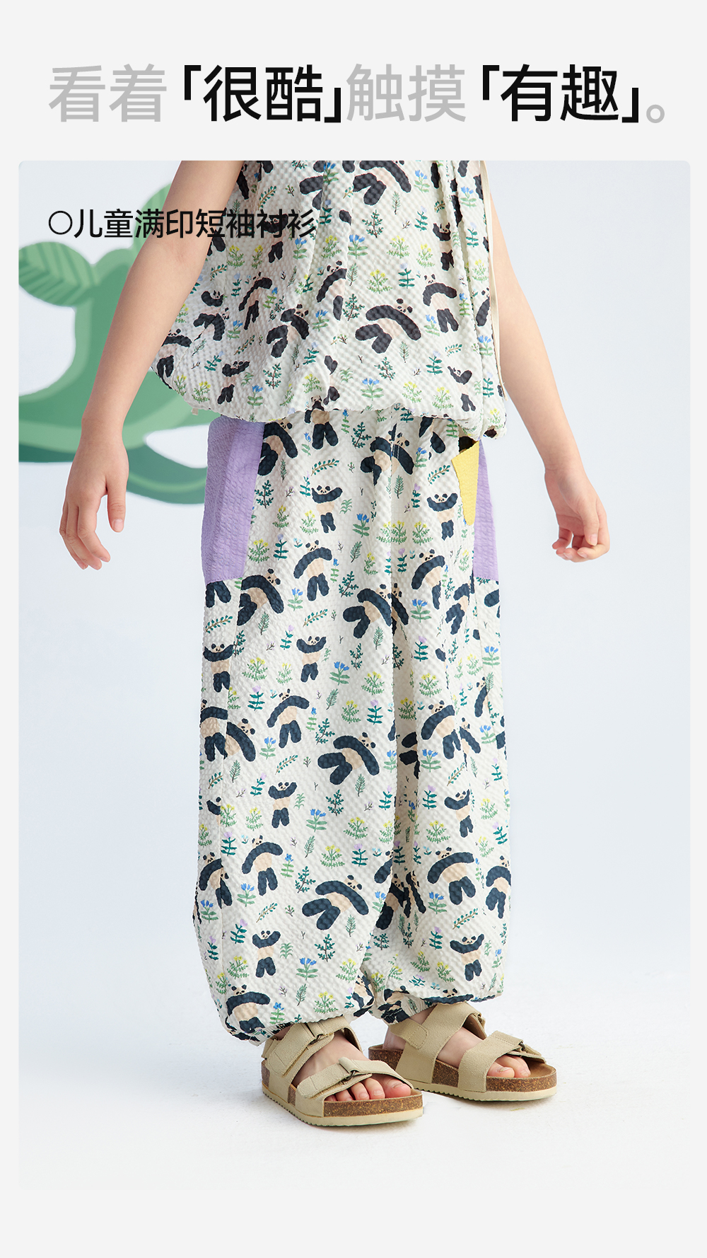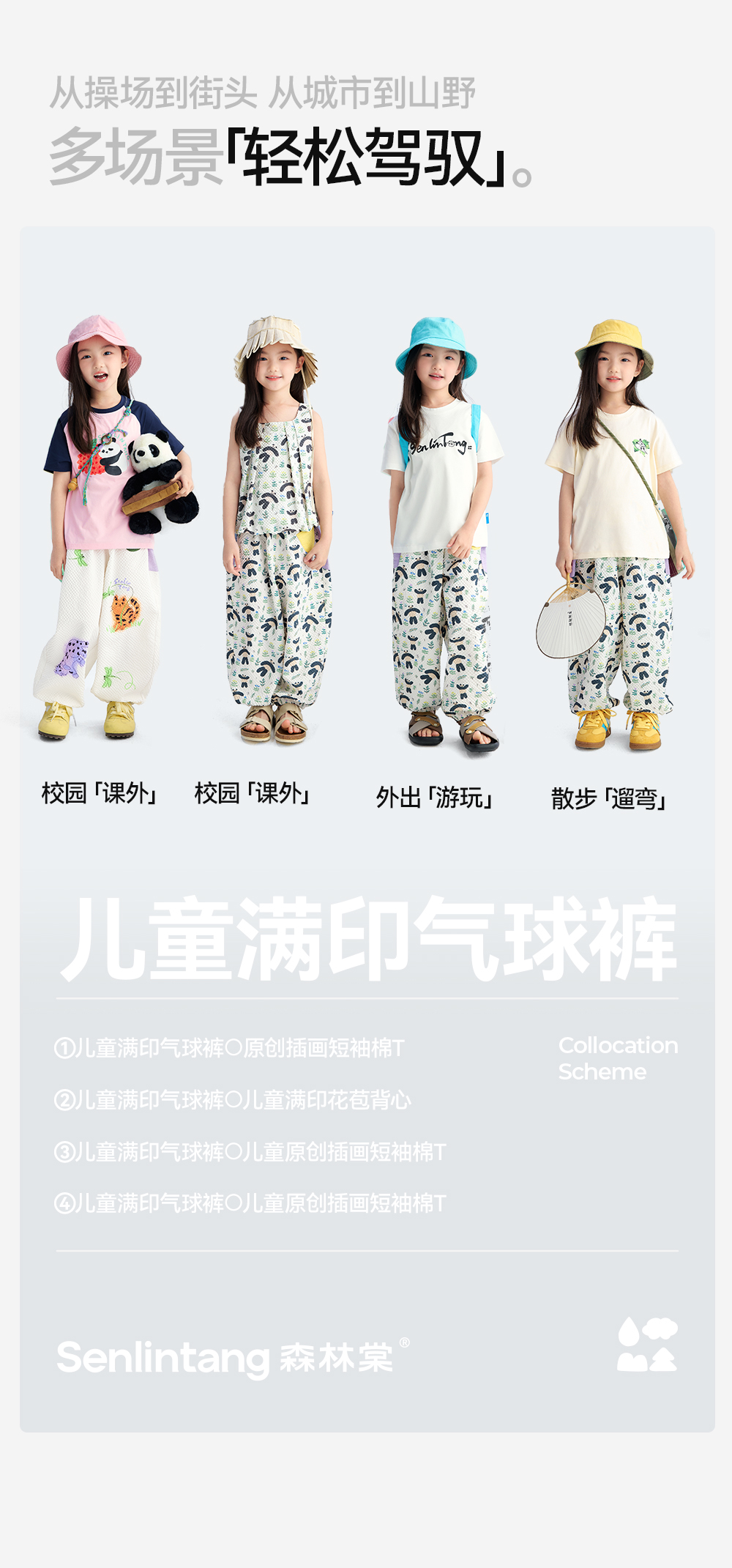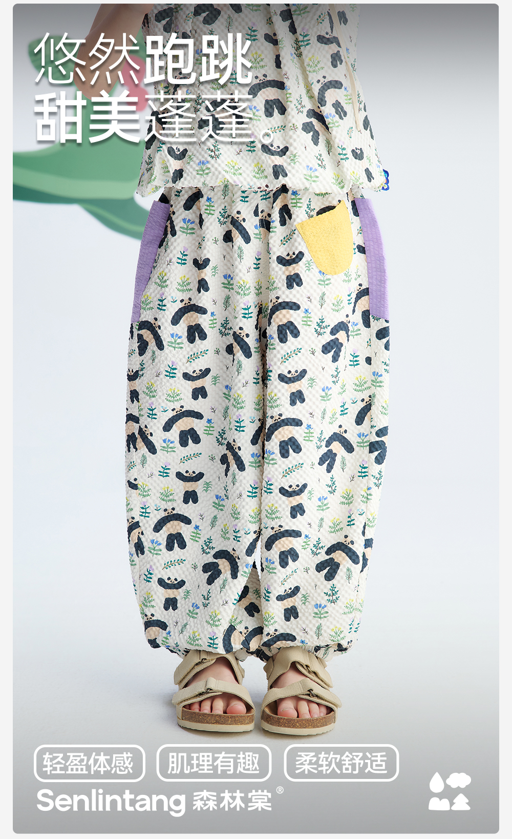 【儿童满印气球裤】森林棠26夏款褶皱布超轻宽松透气小童卡通印花阔腿裤42662255