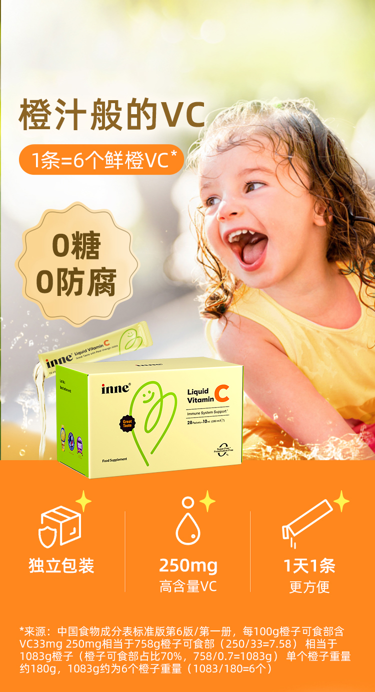 【一口价】inne无糖VC儿童复合维生素c宝宝vc口服液体婴幼儿甜橙味 商品图6