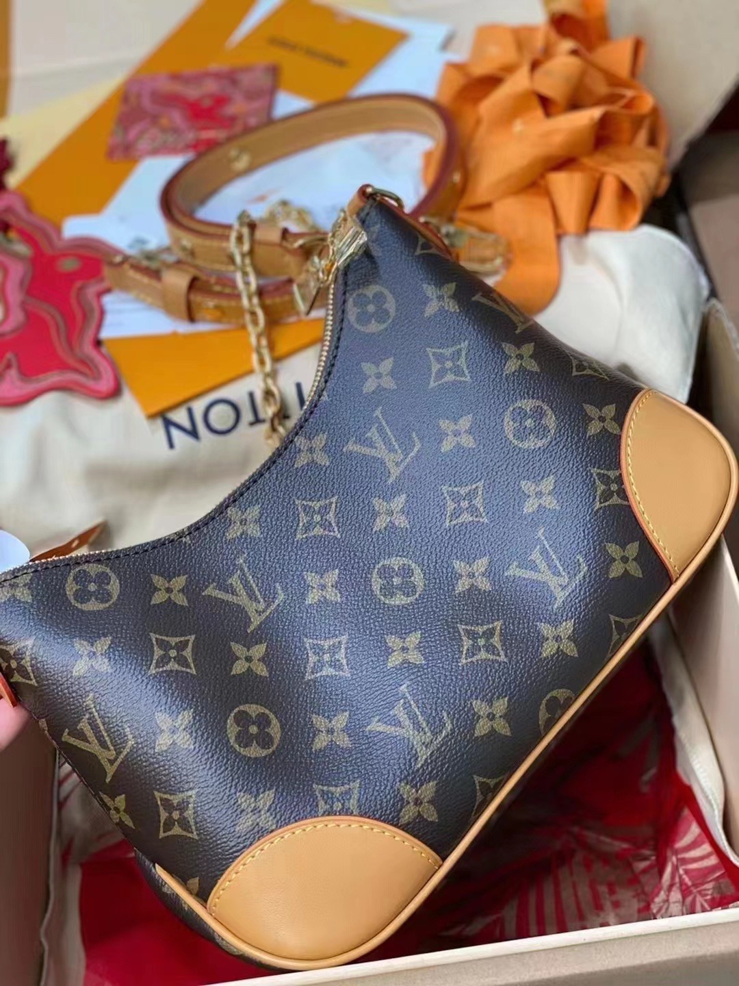 手袋取材精典 Monogram 帆布,配有双拉链和可容纳 iPhone 12 Pro 手机的宽敞内贴袋。可调节肩带实现斜挎或肩背,取下即可化身小号链条包或手拿包。详细特征