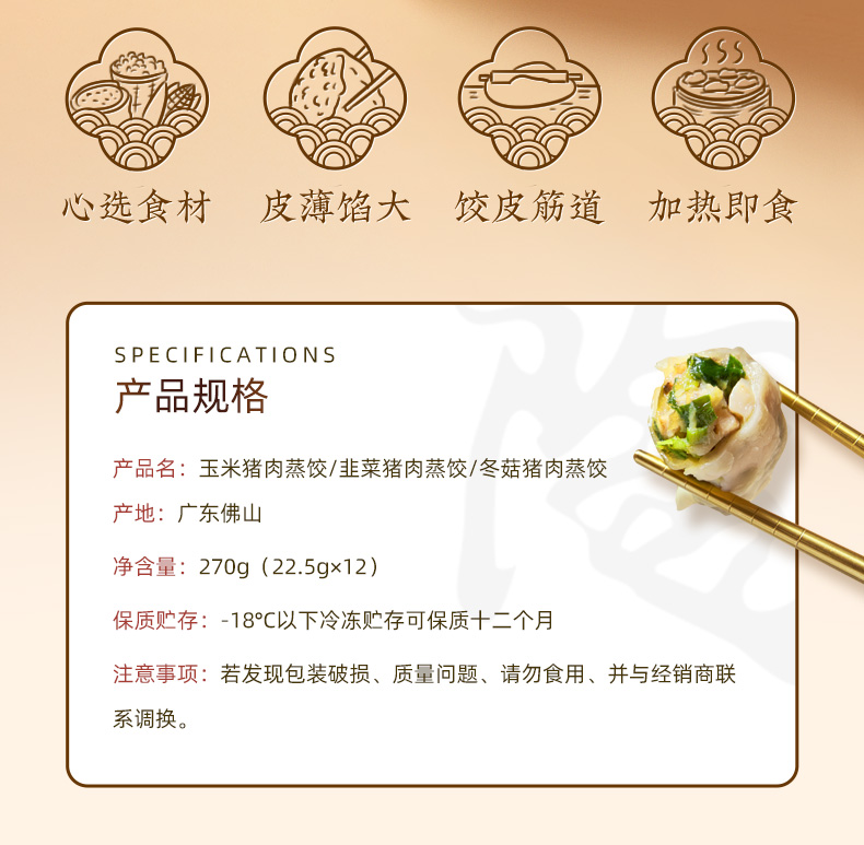 【冷链包邮】玉米猪肉蒸饺270g 方便早餐广式点心