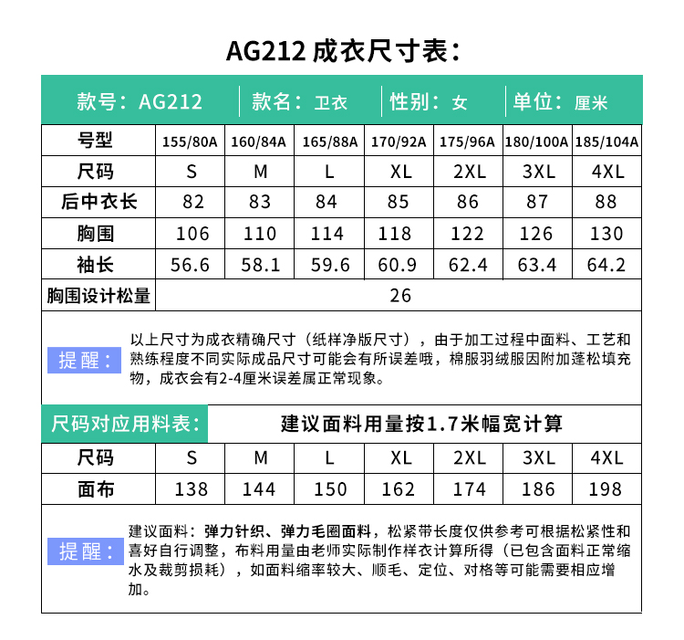 裁缝学苑AG212 时尚百搭宽松显瘦洋气卫衣女装服装打版纸样裁剪图