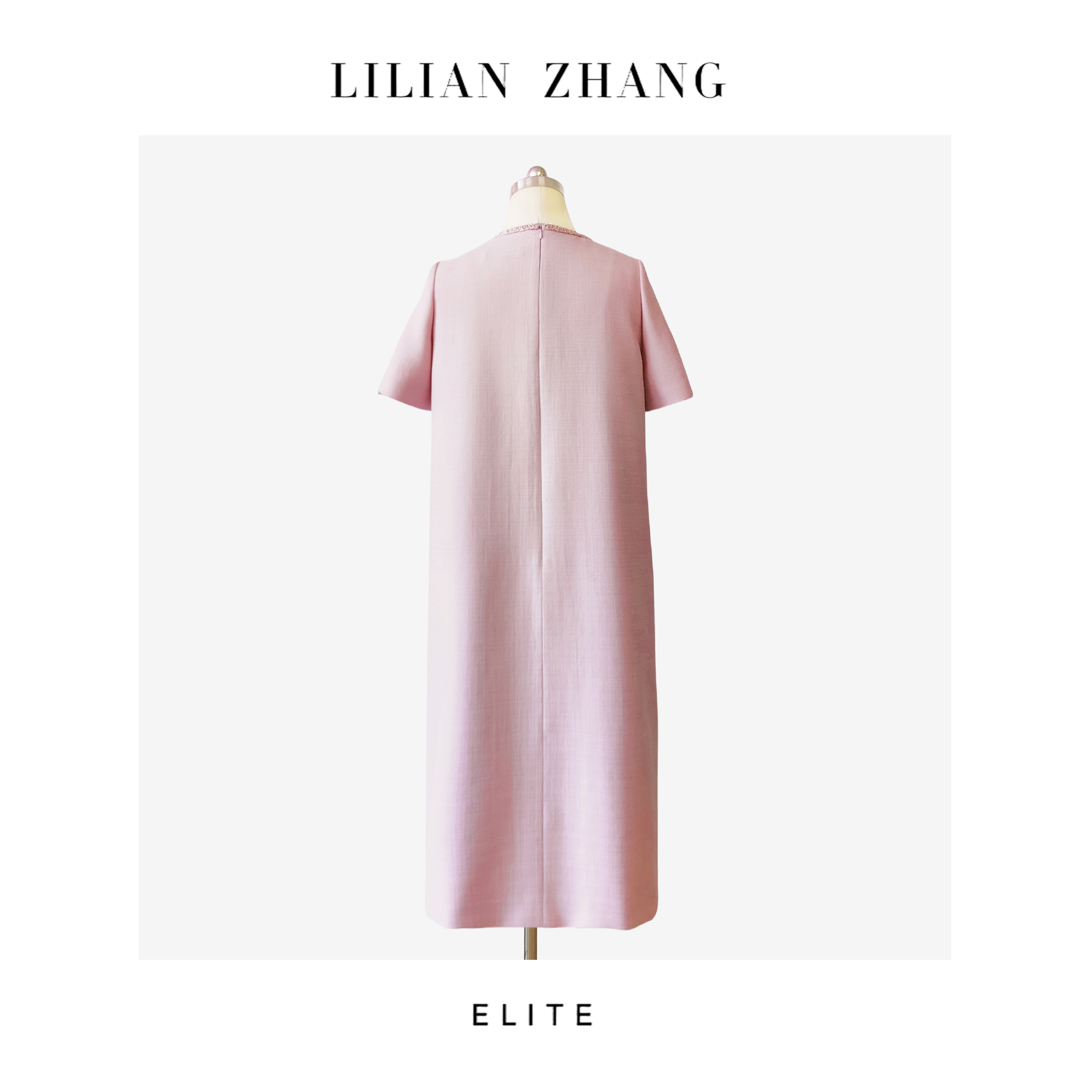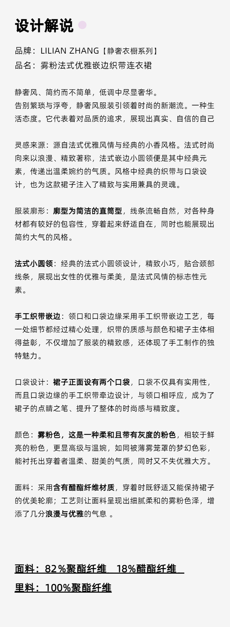 E“定制”——静奢风“风尚之选”雾粉法式优雅嵌边织带连衣裙 2501065