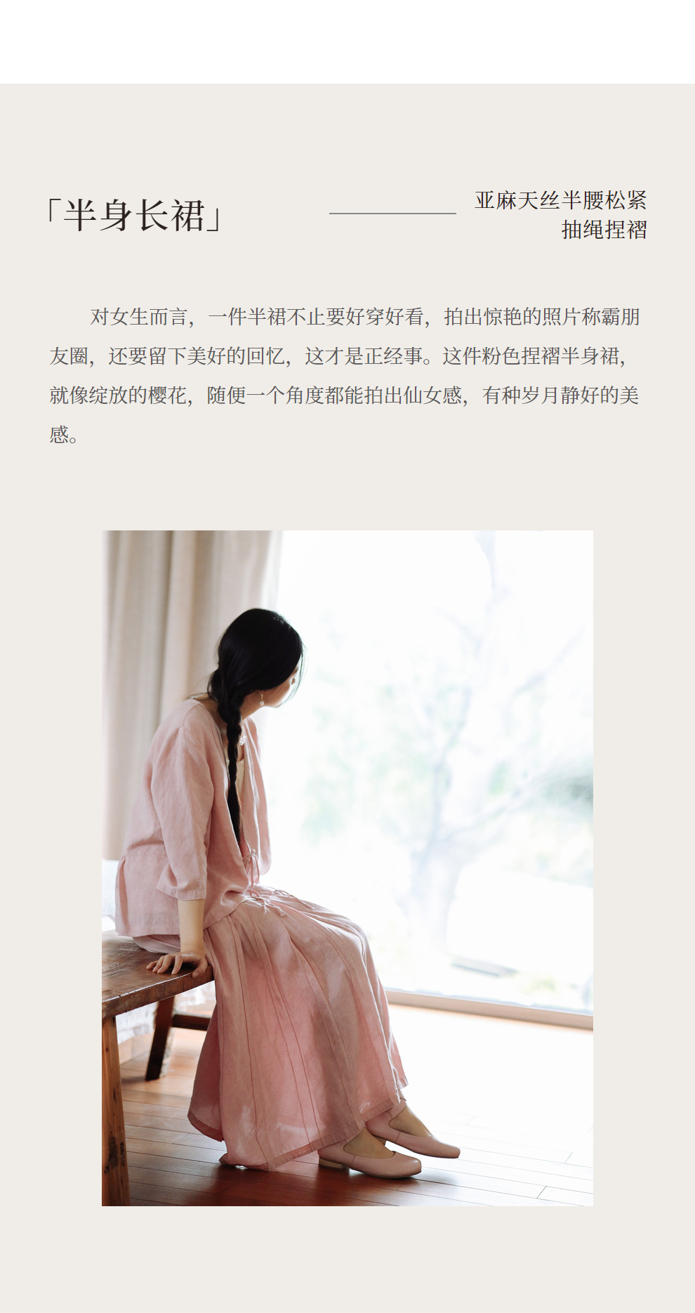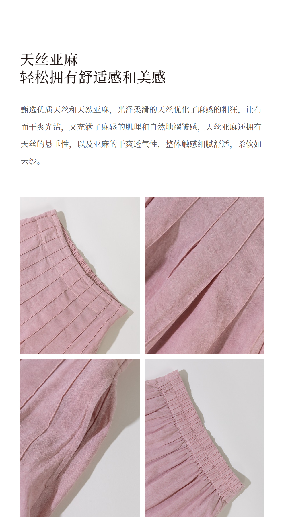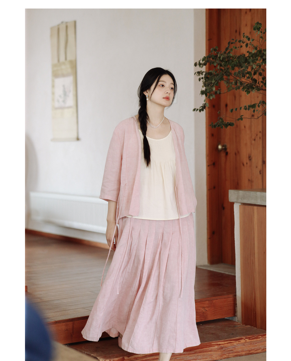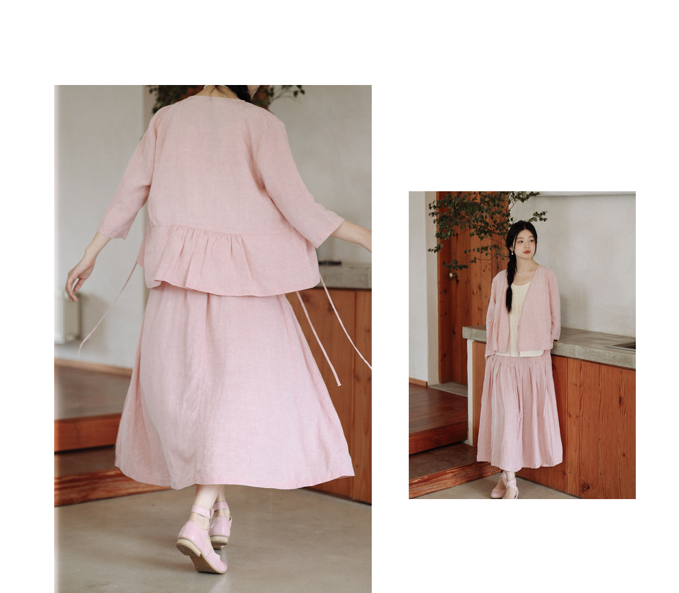 * 绽放225朵/藕荷粉仙女感半身裙天丝亚麻半腰松紧捏褶