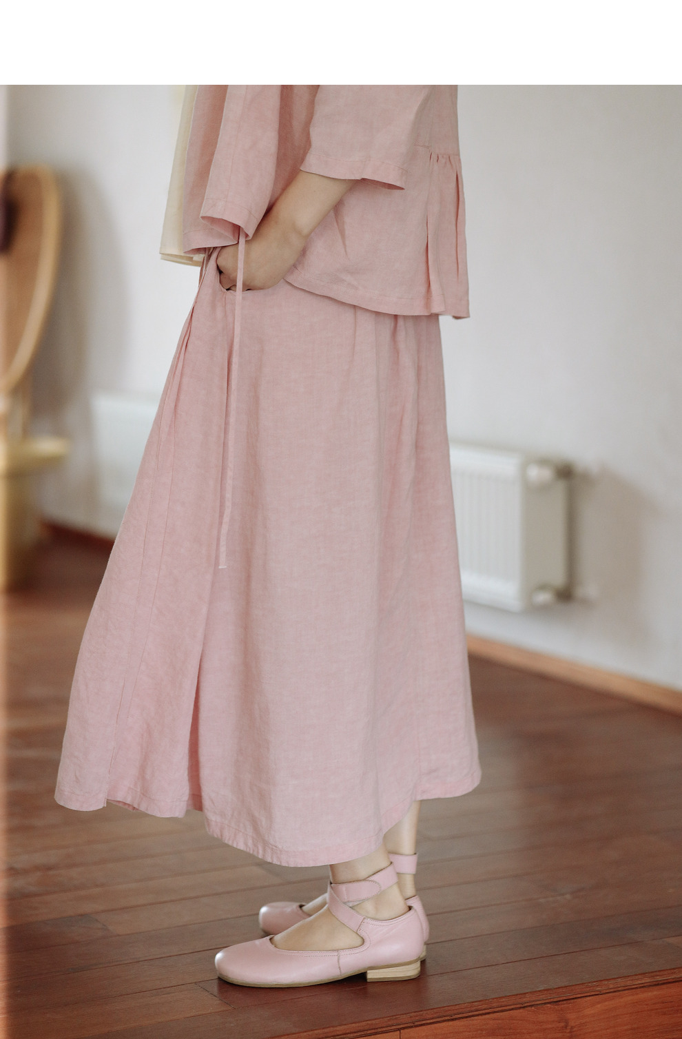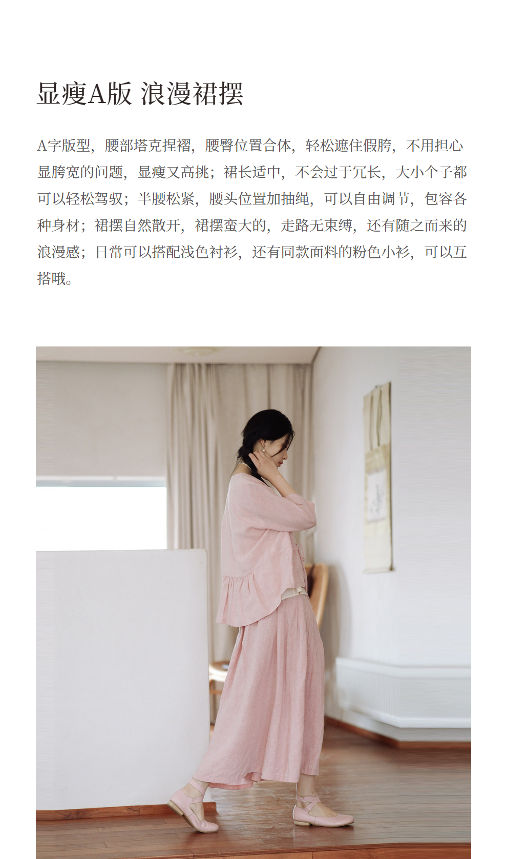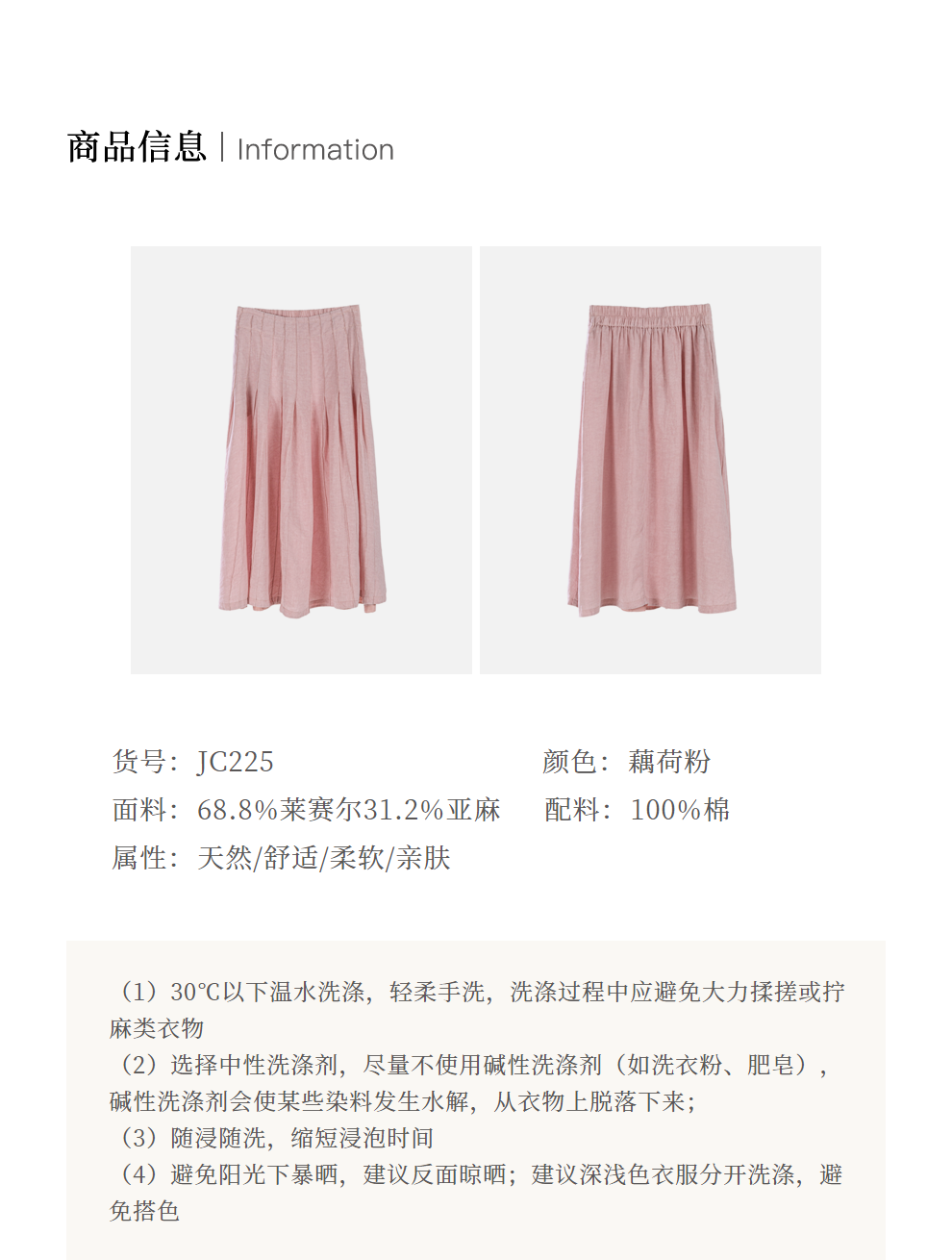 * 绽放225朵/藕荷粉仙女感半身裙天丝亚麻半腰松紧捏褶