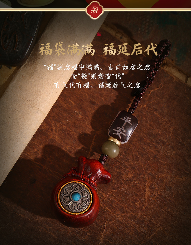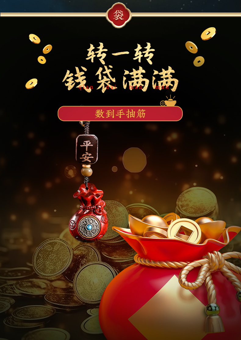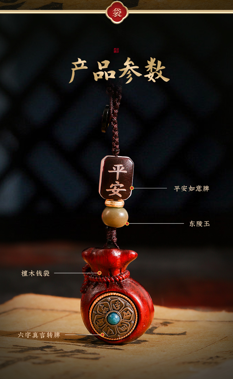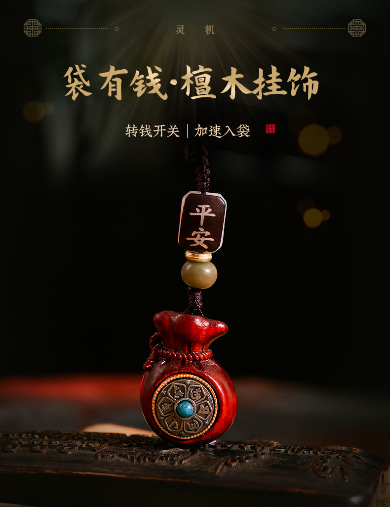 灵机吉品 袋有钱檀木挂饰钥匙扣挂件车挂包包 建议每日拨动乾坤盘
