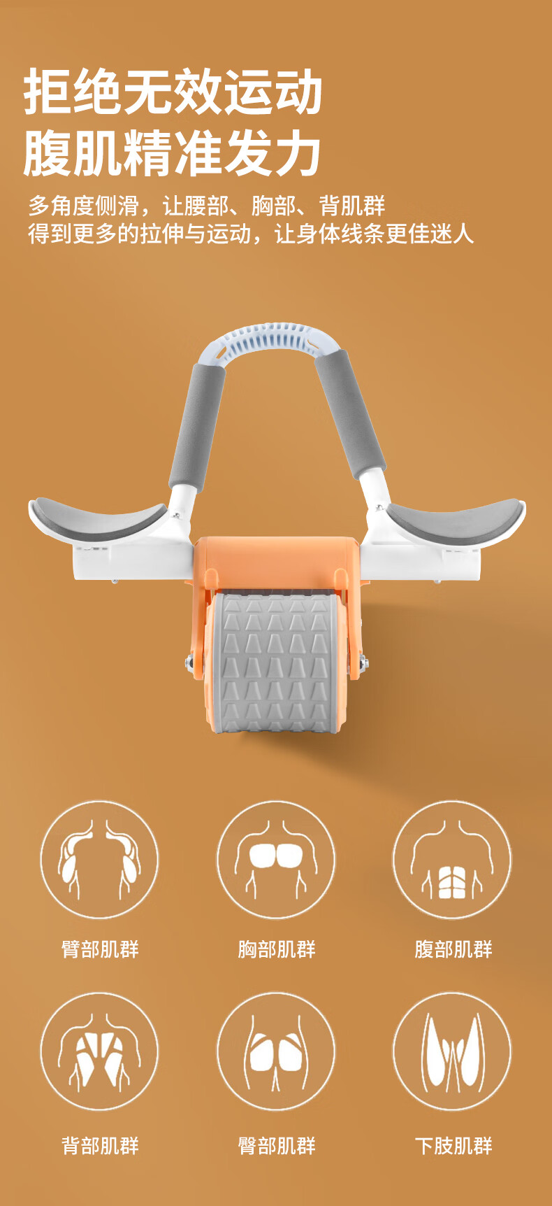 【下单赠送跪垫-轻松练出腹肌】凯速自动回弹肘撑健腹轮升级款 平板支撑二合一