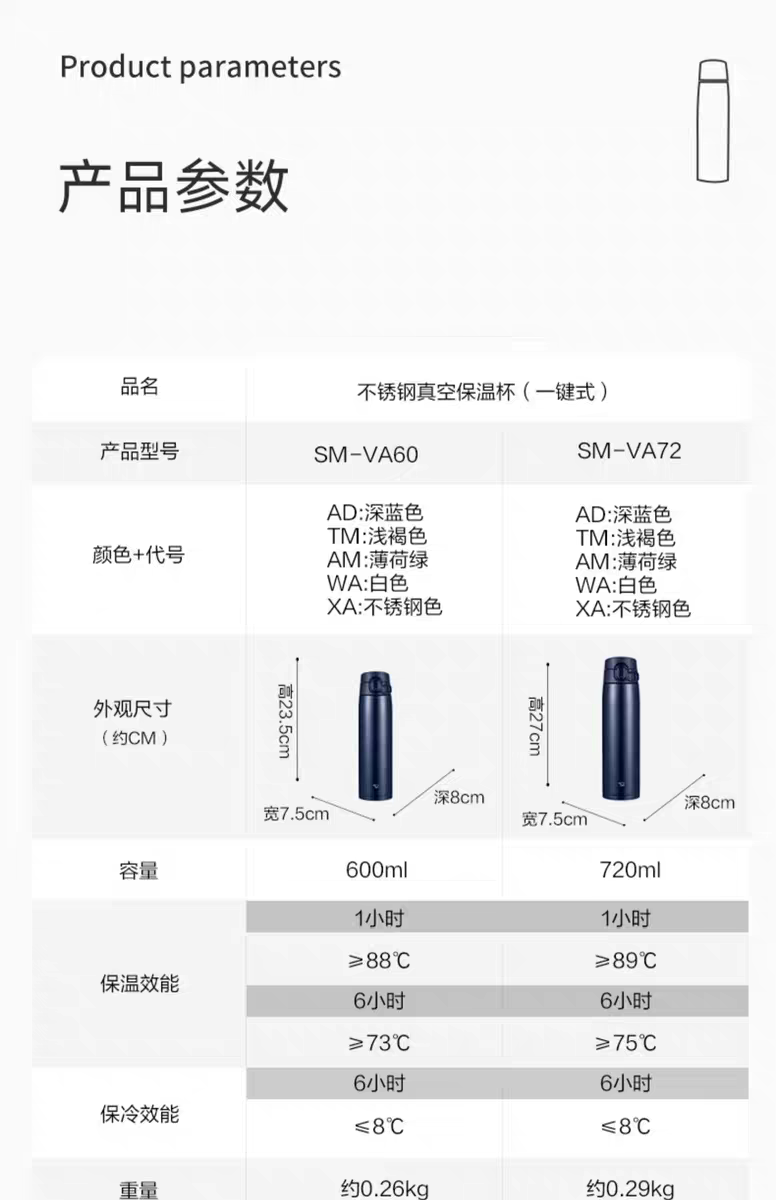 【6F】象印原装进口大容量不锈钢保温杯VA60/72