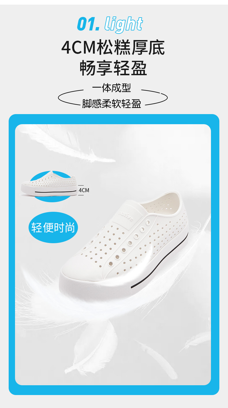 【成人厚底】native春夏新品Jefferson hi洞洞鞋女款凉鞋雨鞋厚底户外鞋