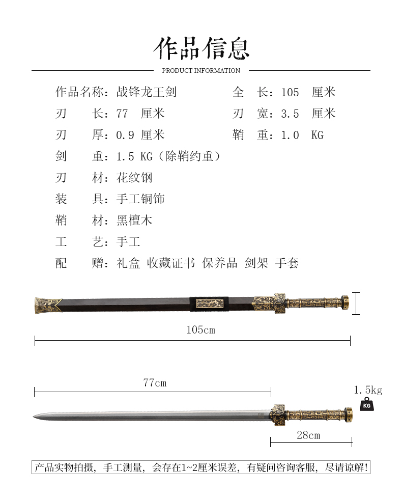 战锋龙王剑 大汉剑战国剑 传统宝剑硬剑一体剑 龙泉沈广隆宝剑 未开刃