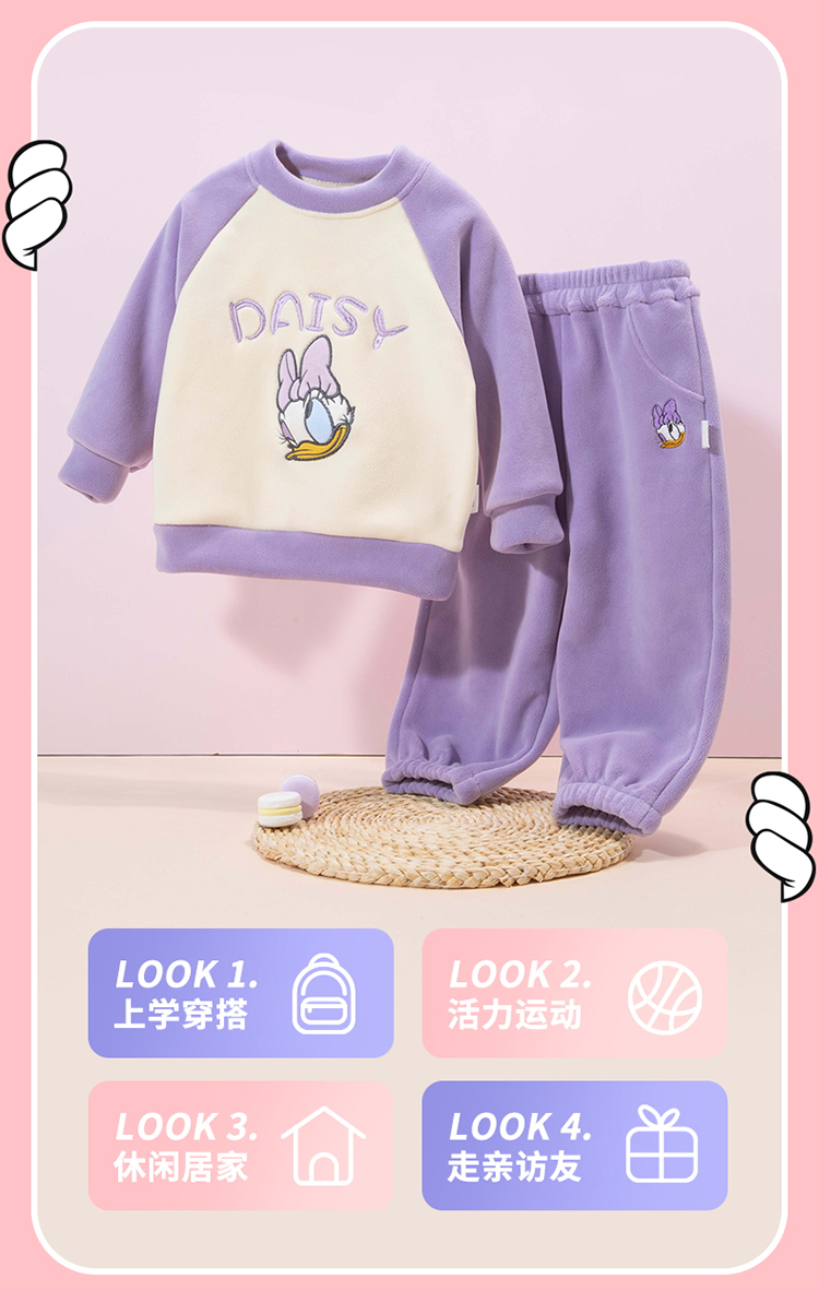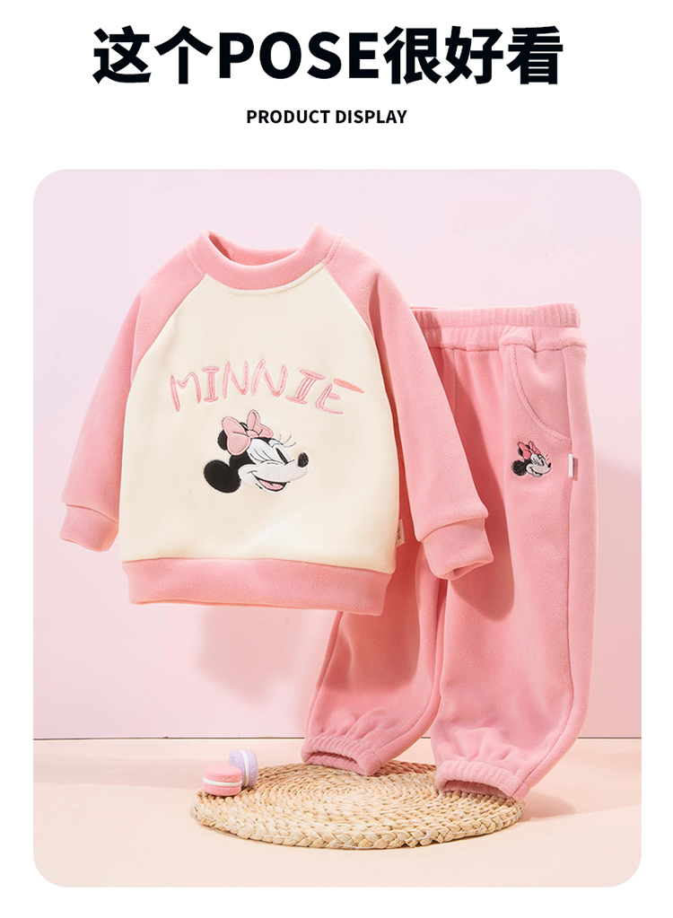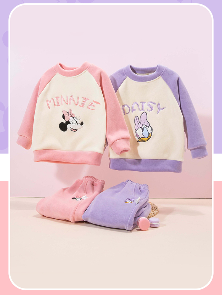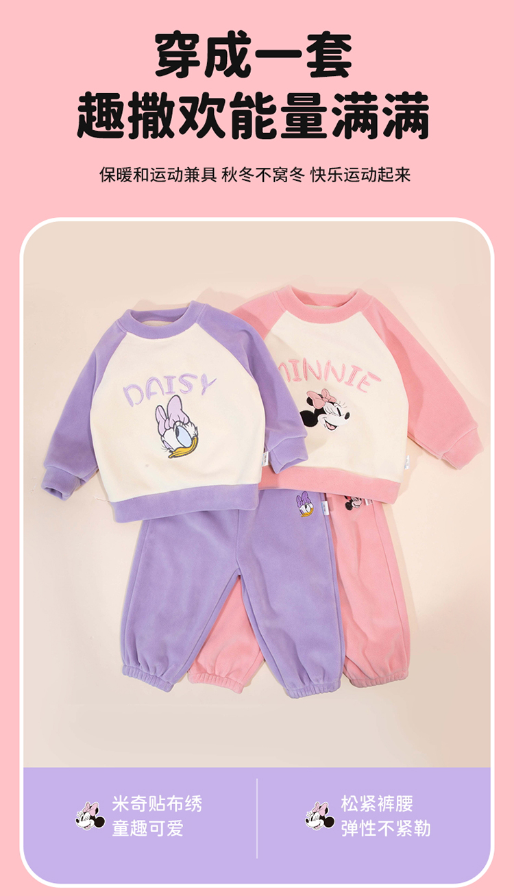 迪士尼童装女童双面奥粒绒可爱甜美米妮黛丝套装儿童保暖卫衣套装ZD3DT018