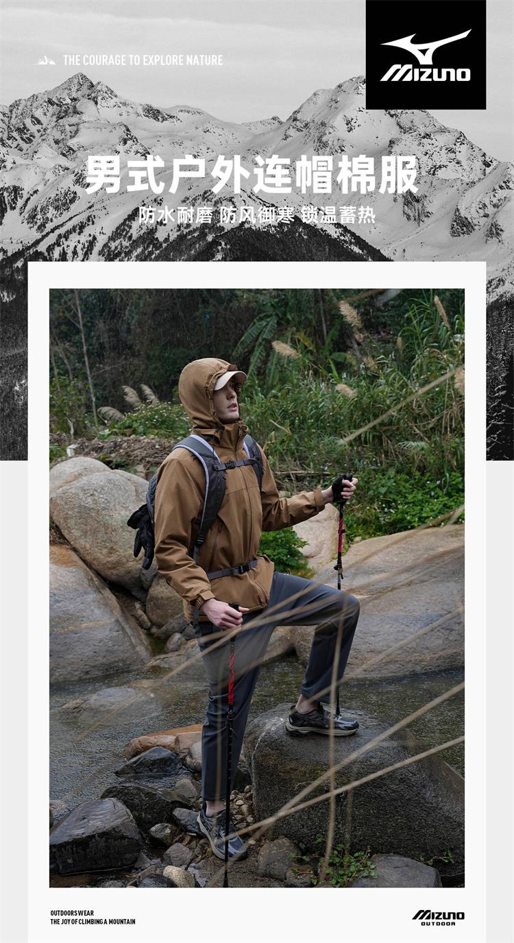 美津浓户外运动登山棉服男士加厚保暖防水防寒棉衣登山外套A2CE3503