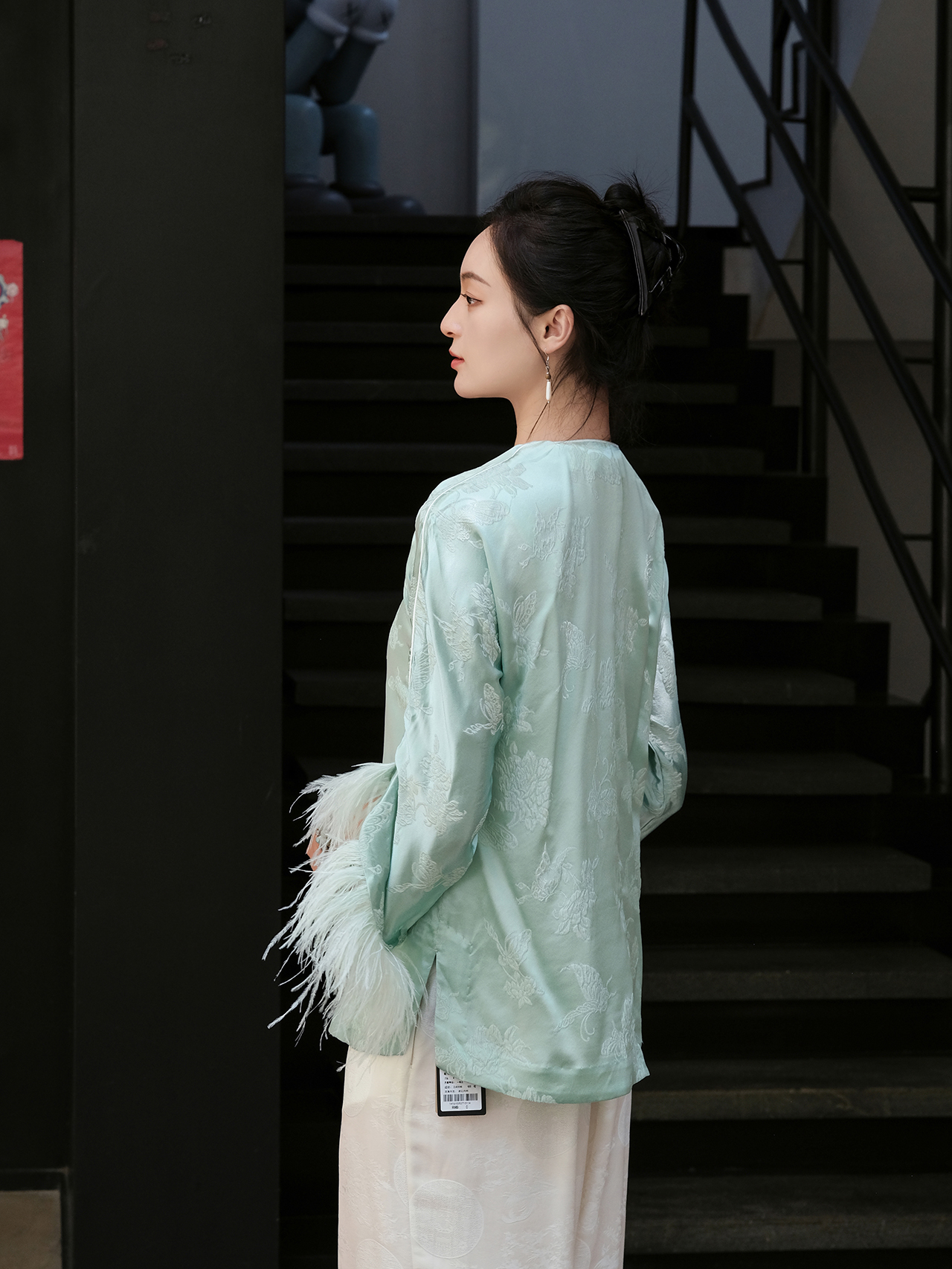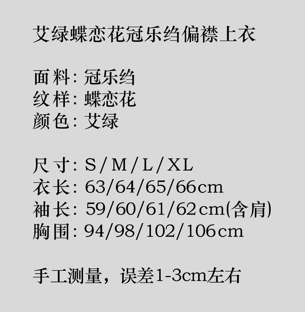 盛唐牡丹 |艾绿蝶恋花冠乐绉偏襟上衣