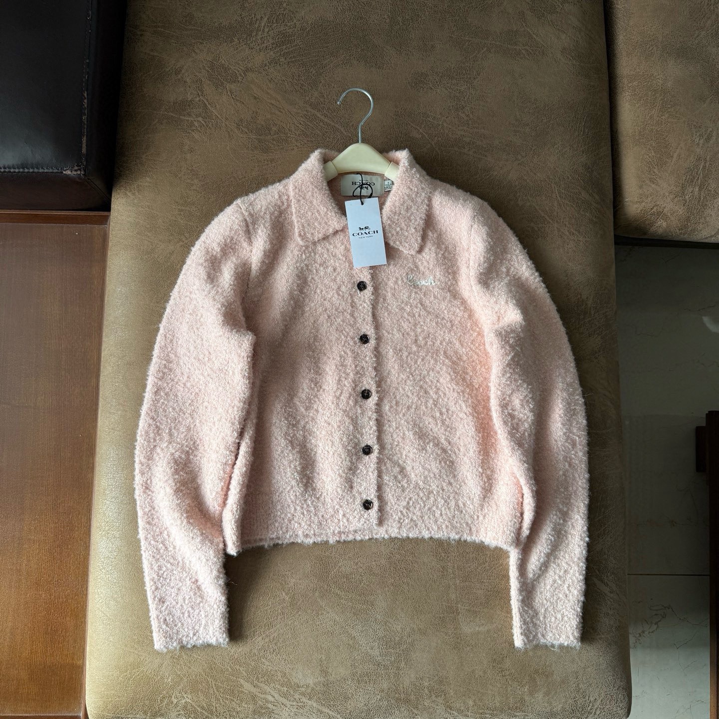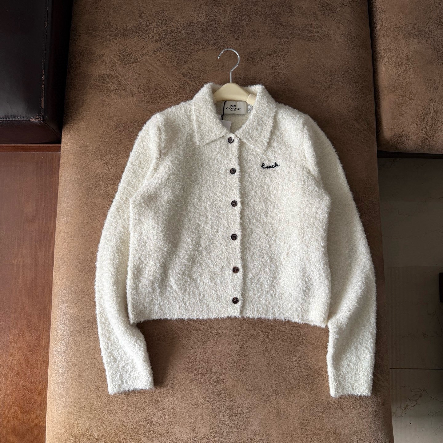 女士刺绣短款开衫针织衫休闲舒适!时髦气质软糯翻领针织衫 大克重,H直身都可驾驭的合身松量遮肉显瘦 打造曼妙显薄身形,纱线含百分之80 POLO领显瘦针织开衫,女秋休闲百搭设计感长袖上衣,一大身精典H型,打造人人可以驾驭的合身松量,遮肉显瘦,打造曼妙显薄身形,POLO领,充满青春学院少女感,领部线条圆润流畅,贴合颈部线条。修饰脸型,衬托出jing致立体面庞,领口袖口下摆加厚包裹性佳,即使久穿也不易变形,单排纽扣,更显立层次感。内里做了四平织带,边缘简约平顺,胸口的刺绣提花堪称点睛之笔,舒适休闲又不失稳重,可以外穿内搭,可以叠穿混搭,多种风格肆意切换~
