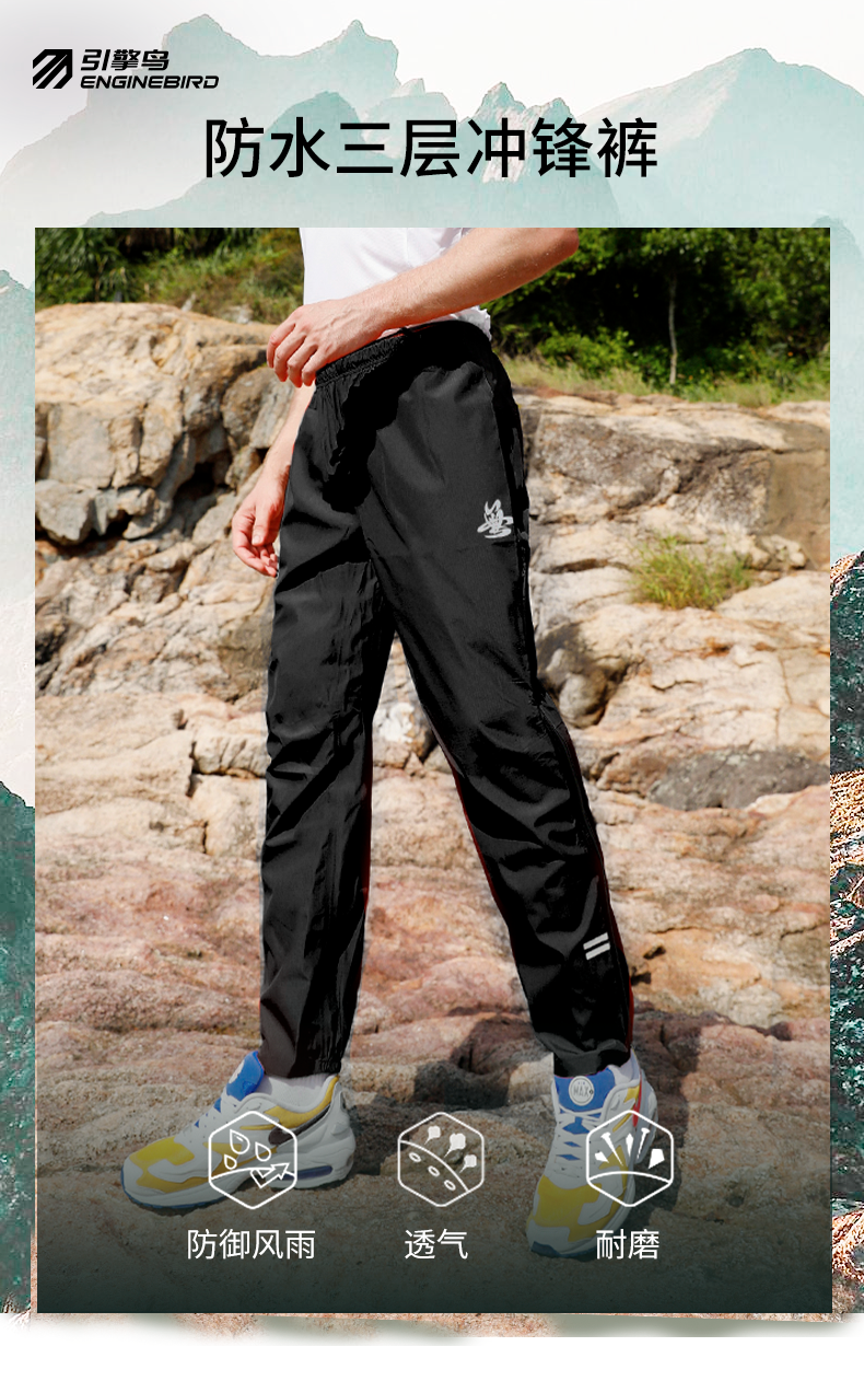 引擎鸟户外冲锋裤男女防风防水徒步登山长裤