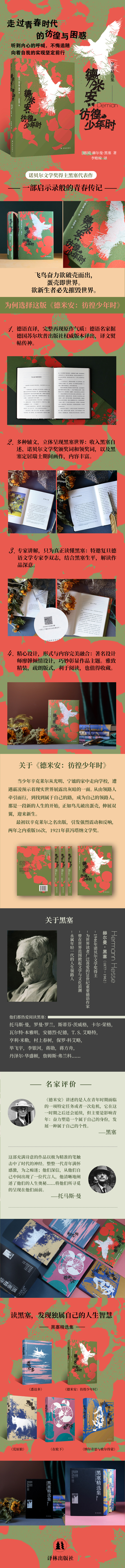 黑塞在不惑之年匿名出版的重要作品,创作之时正逢第一次世界大战,一问世便在文学界与社会上引发强烈震动和反响,两年之中重版16次,获冯塔纳文学奖。