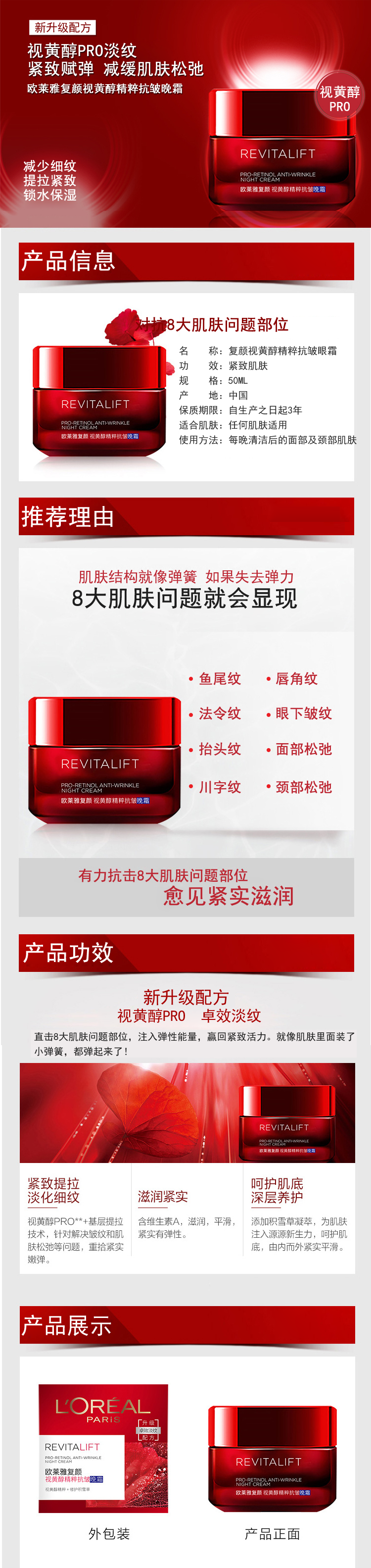 欧莱雅复颜视黄醇精粹抗皱晚霜(50ml)【30171379】