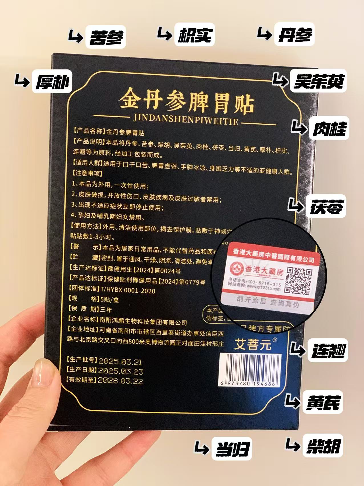 【香港 大药房·金丹参脾胃贴】一贴 调理脾胃 排出垃圾 给脾胃做次“按摩"坚持用=状态越来越好!