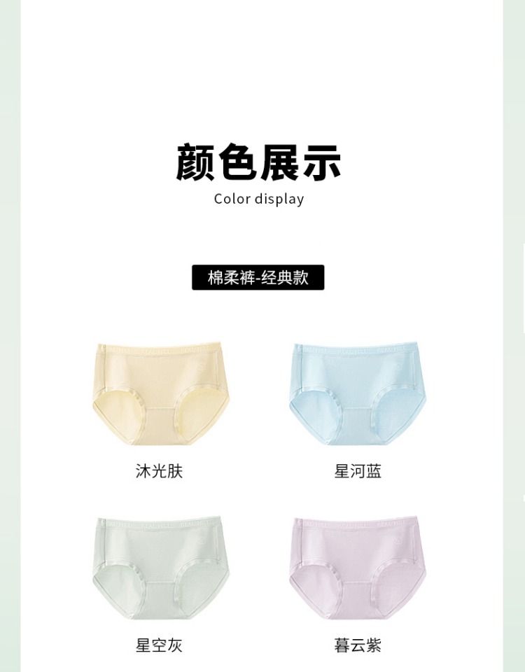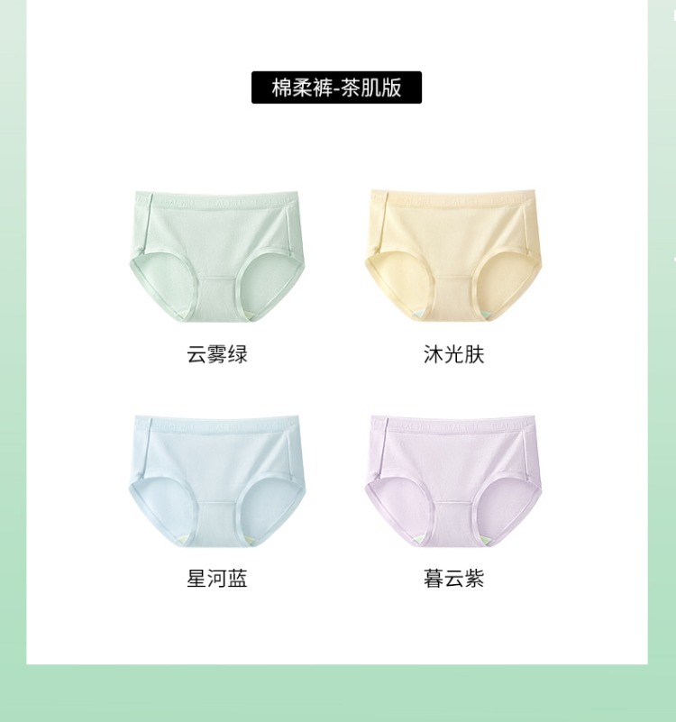 N2-【买6赠1】【茶肌抑菌】润微纯棉内裤女10A抗菌女士三角裤头无痕大码短裤 棉柔裤