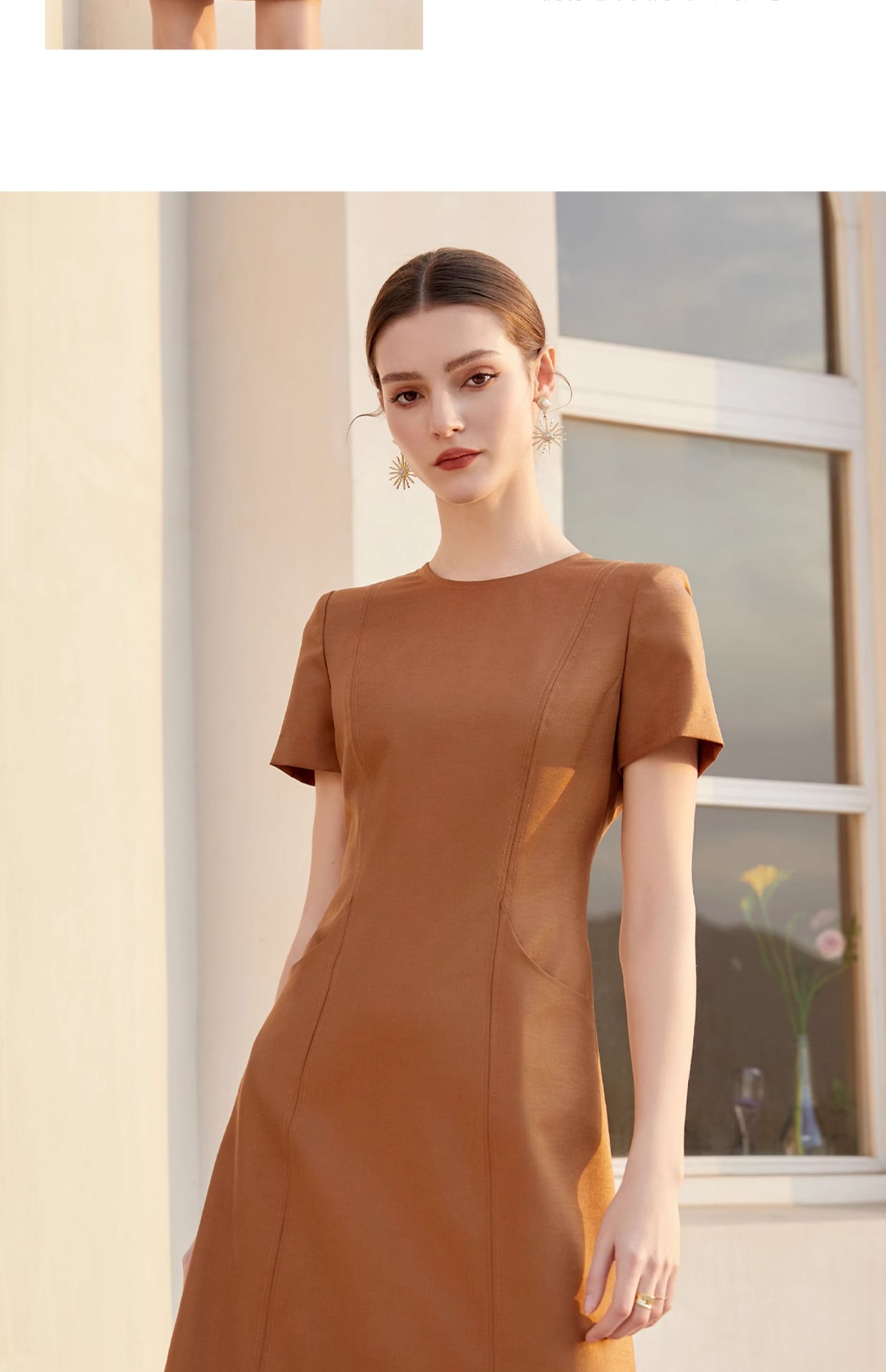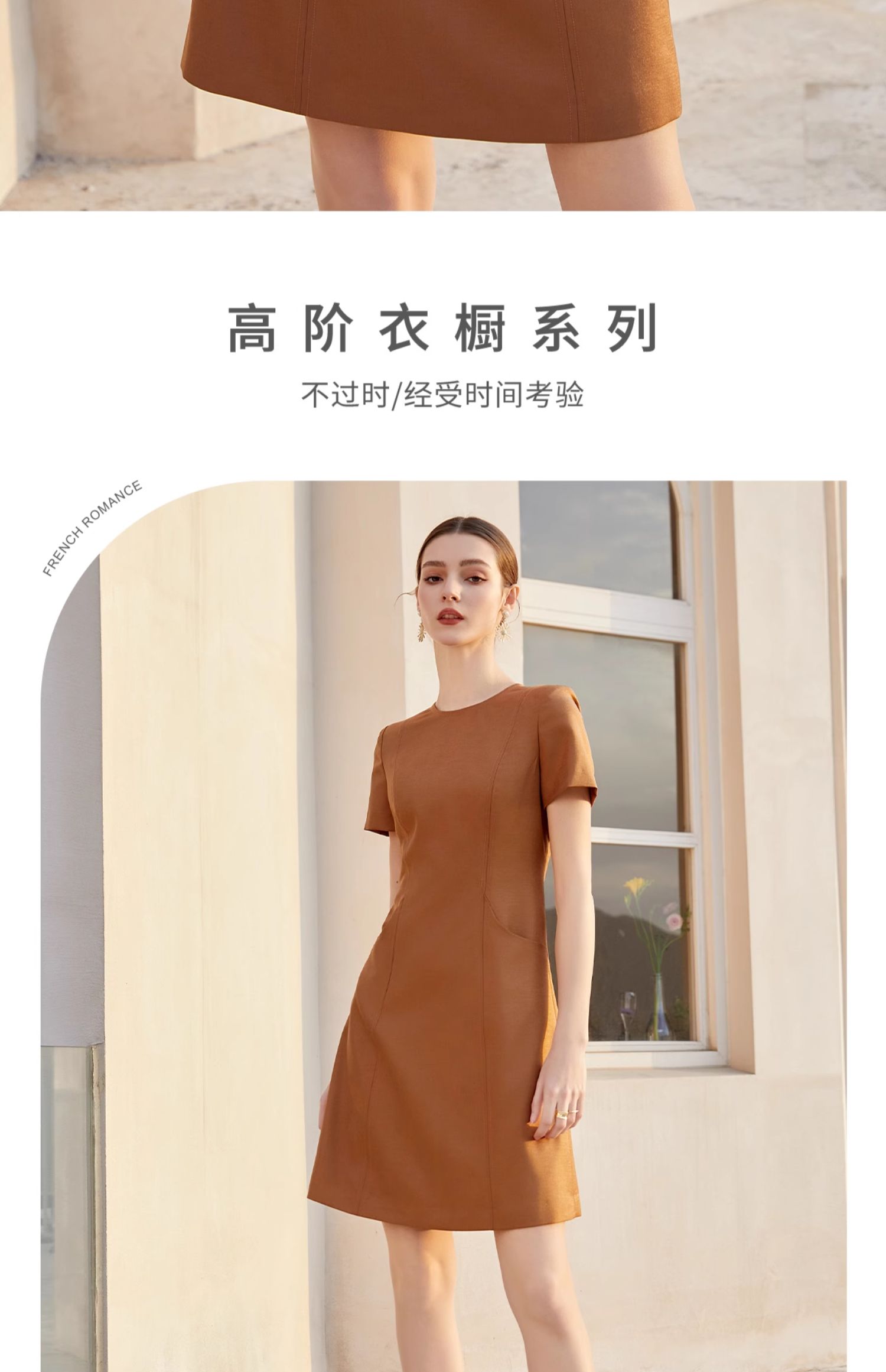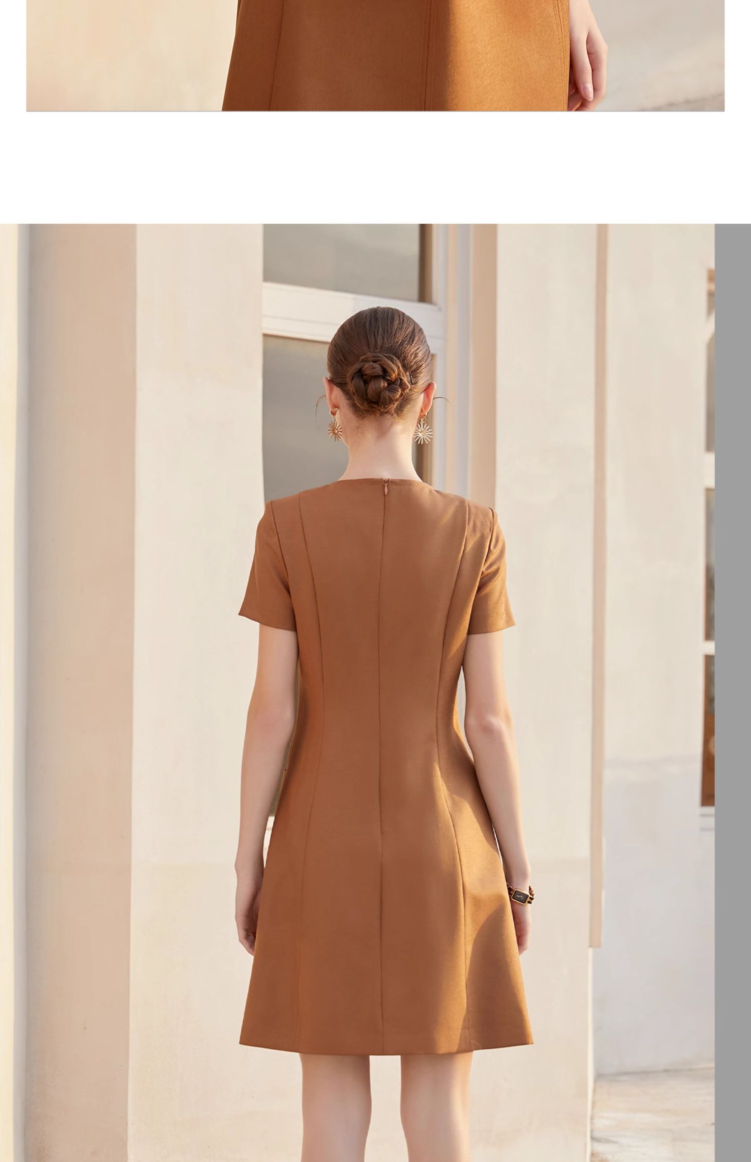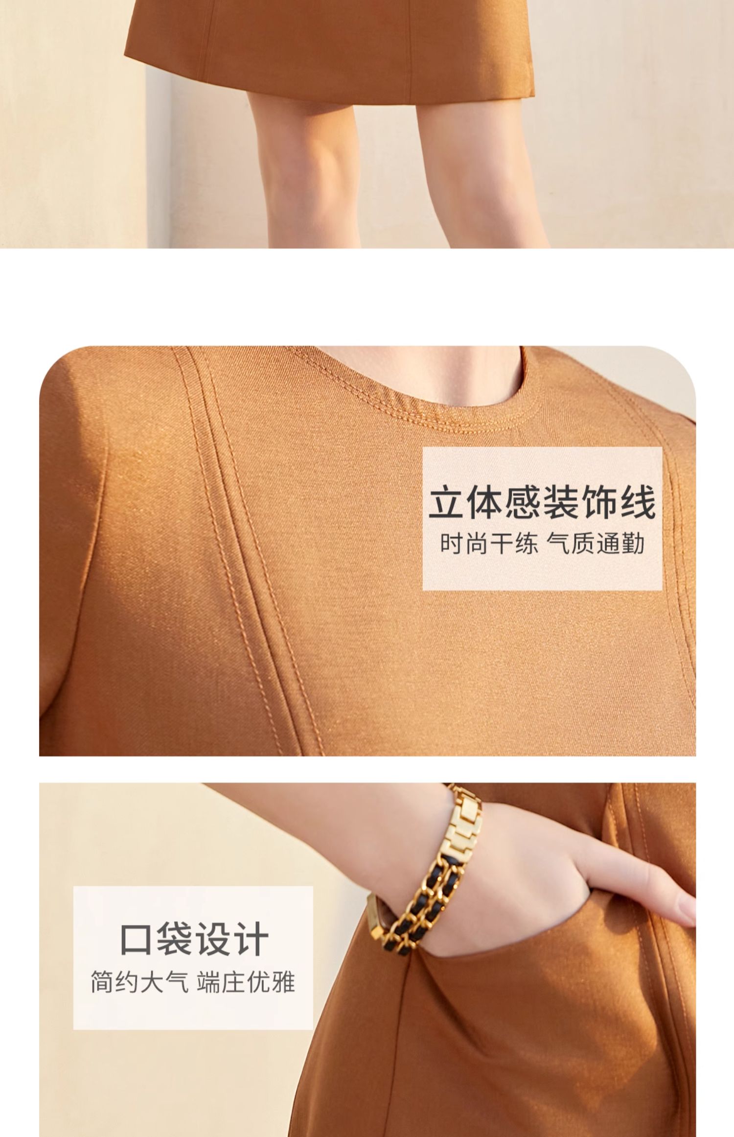 AD夏季短袖纯色连衣裙女新款美拉德立体感走线西装裙时尚OL职业装