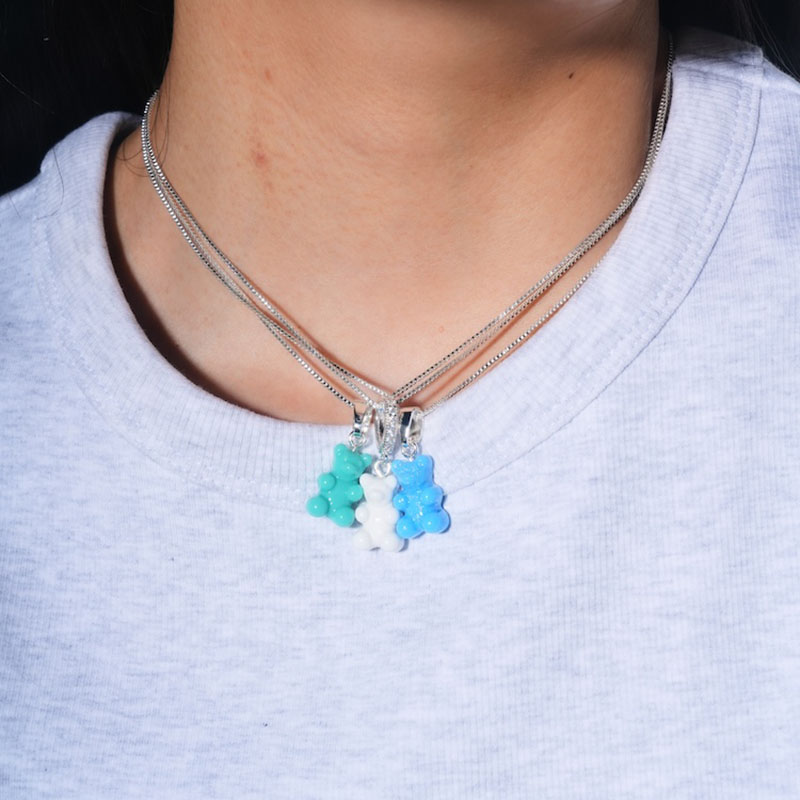 北京仓|CRYSTAL HAZE-Nostalgia Bear-classic-亮绿色小熊 吊坠(银色环扣)[挪威设计师]