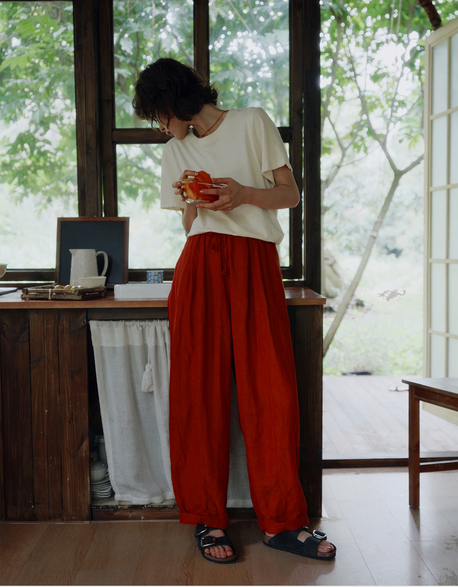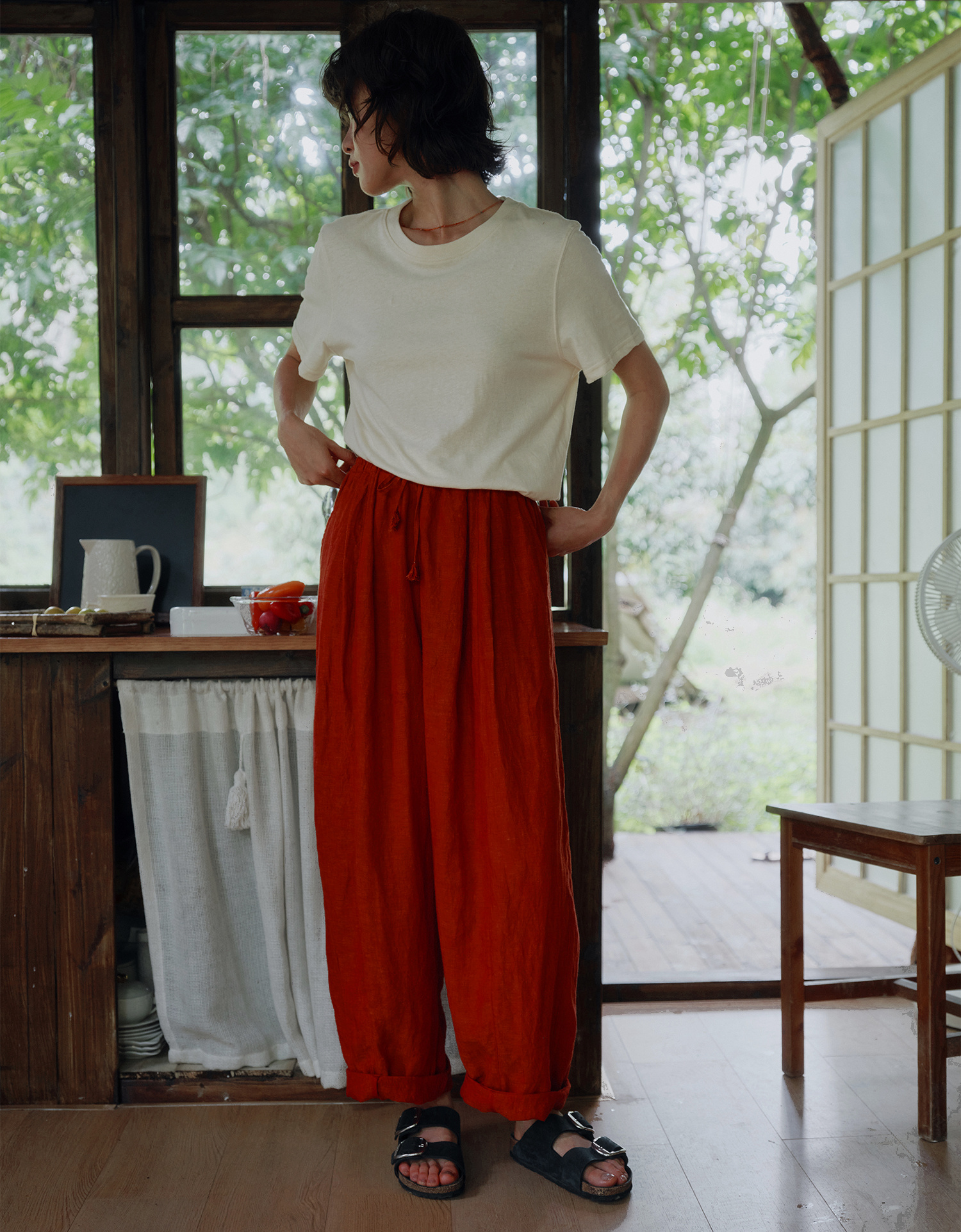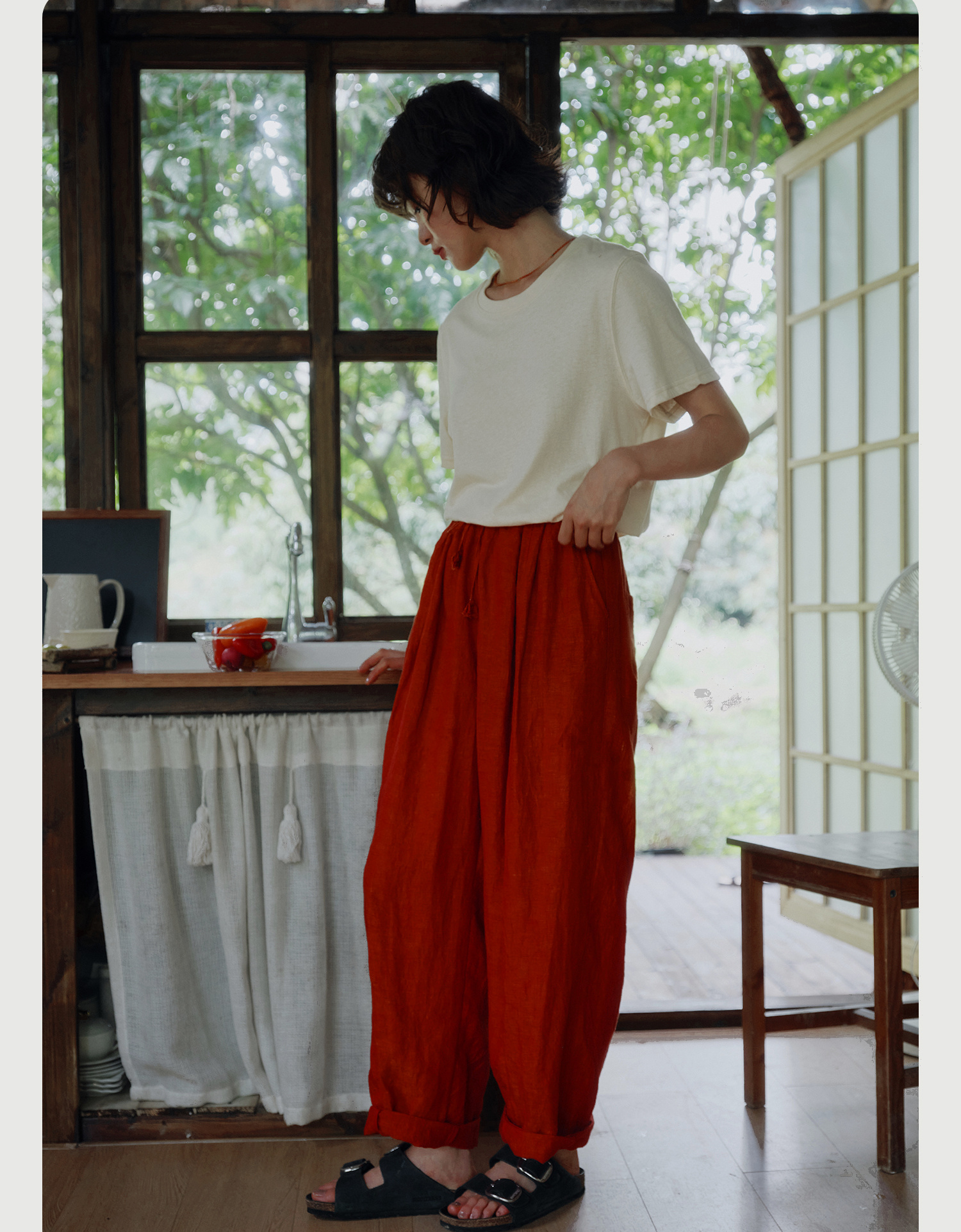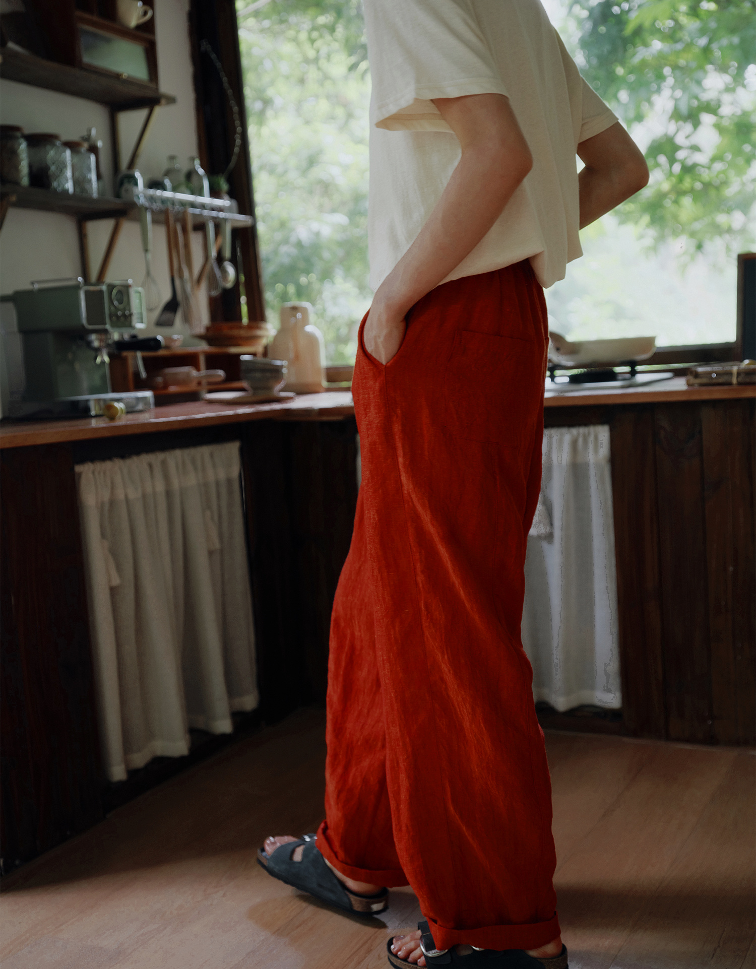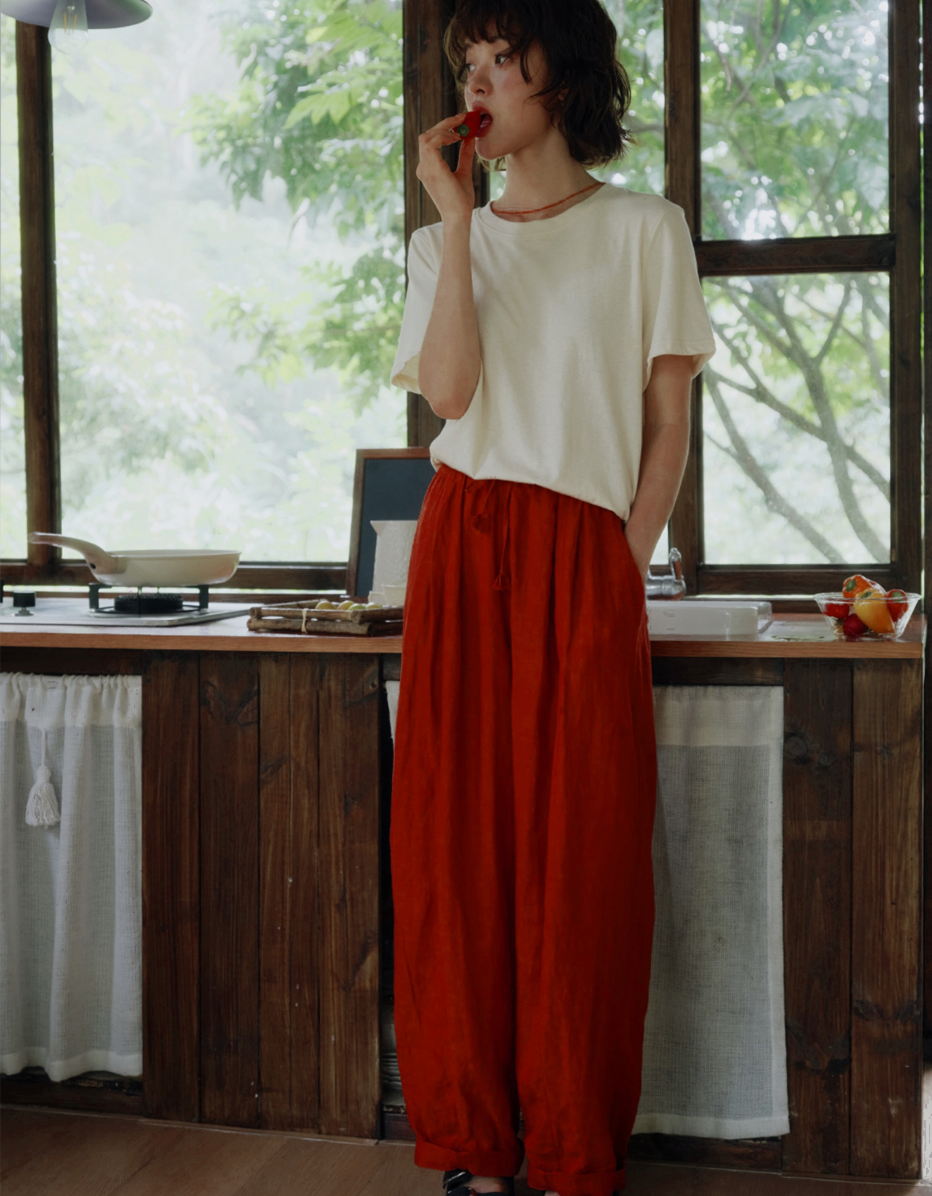 天丝棉的柔软垂顺,颜色复古高级感~和纯棉相比触感更干爽柔顺,夏天穿它走路都带风。定染专研朱殷红一眼爱上,跑遍染厂才调出的神仙色,独特复古。