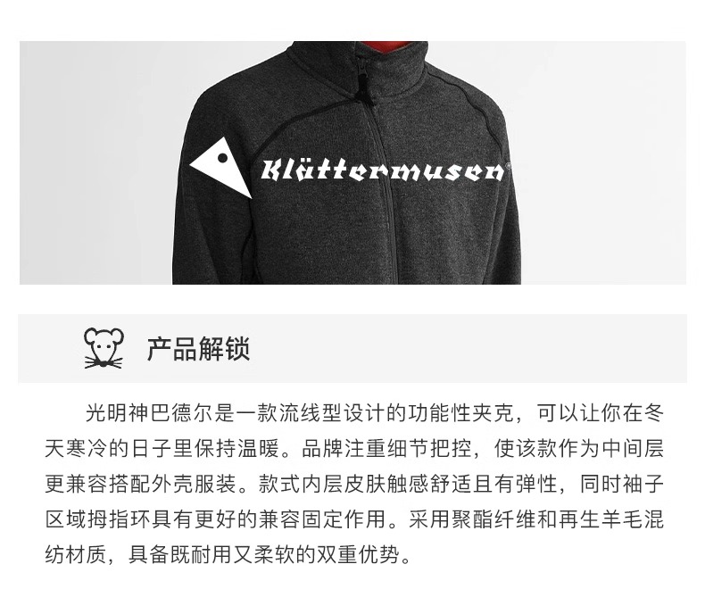 KLATTERMUSEN/攀山鼠秋冬巴德尔户外抓绒防寒运动外套男女20605M