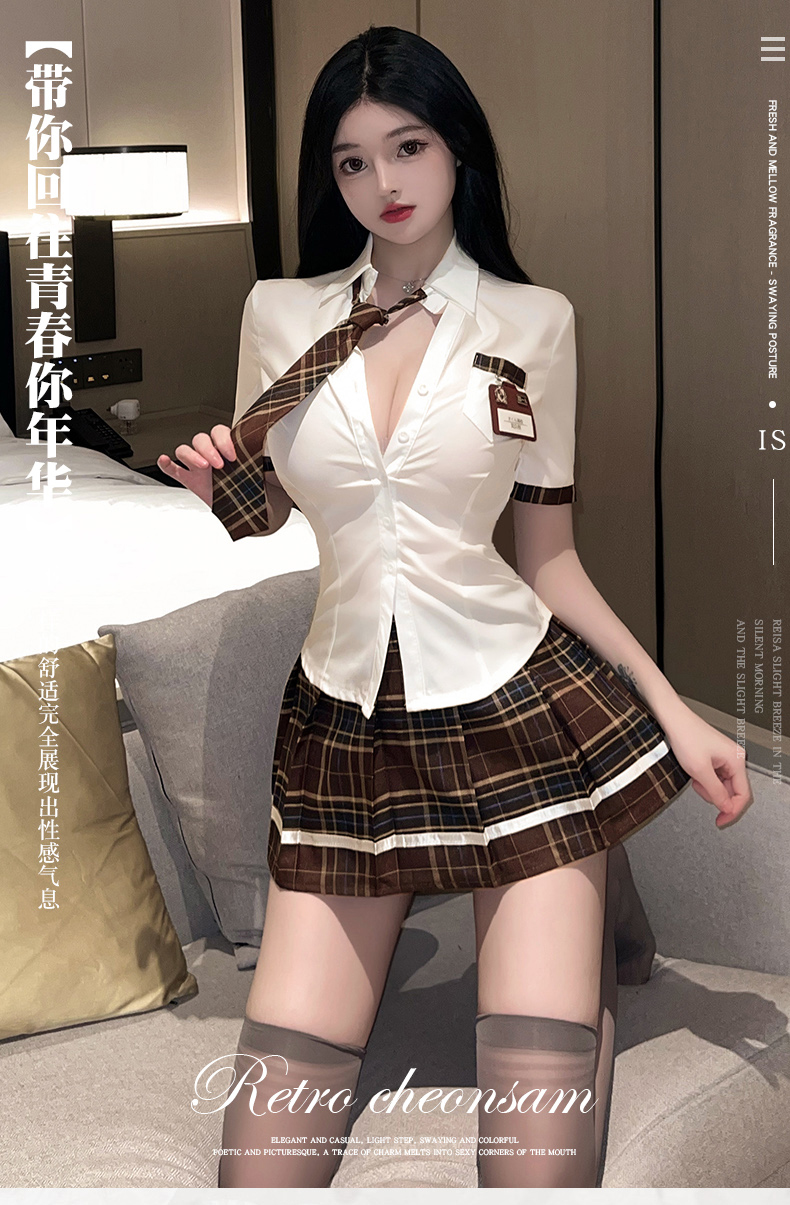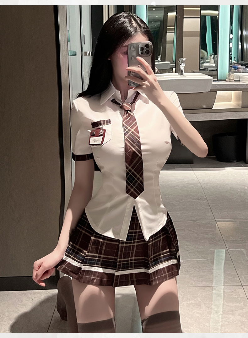 【性感制服】学生制服套装(领带+衬衣+百褶裙)纯欲诱惑性感甜美情趣内衣睡衣6712