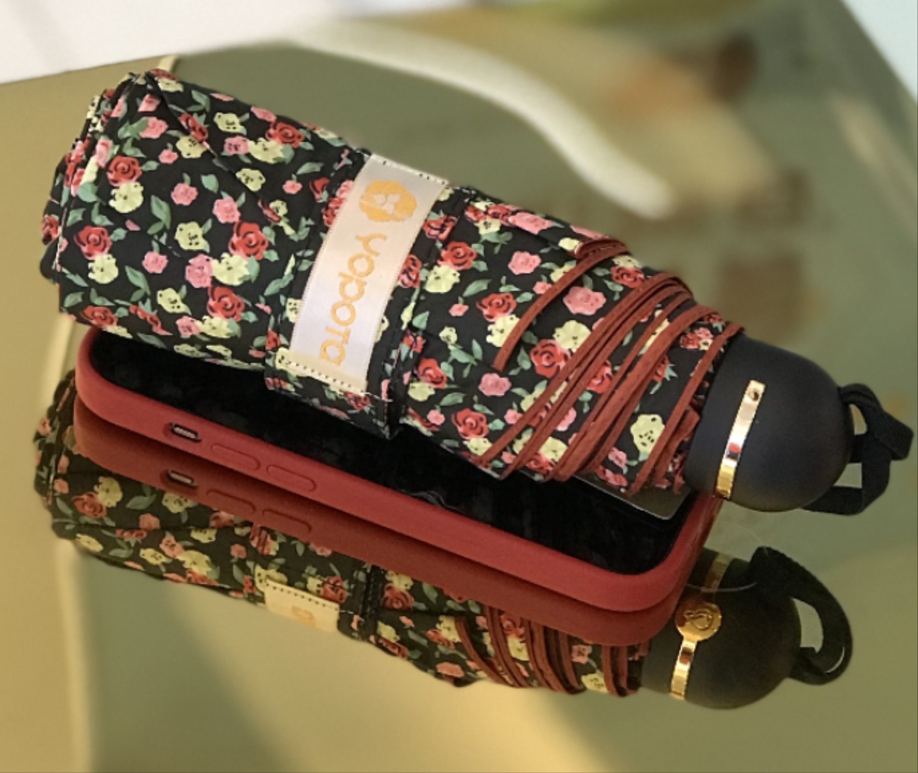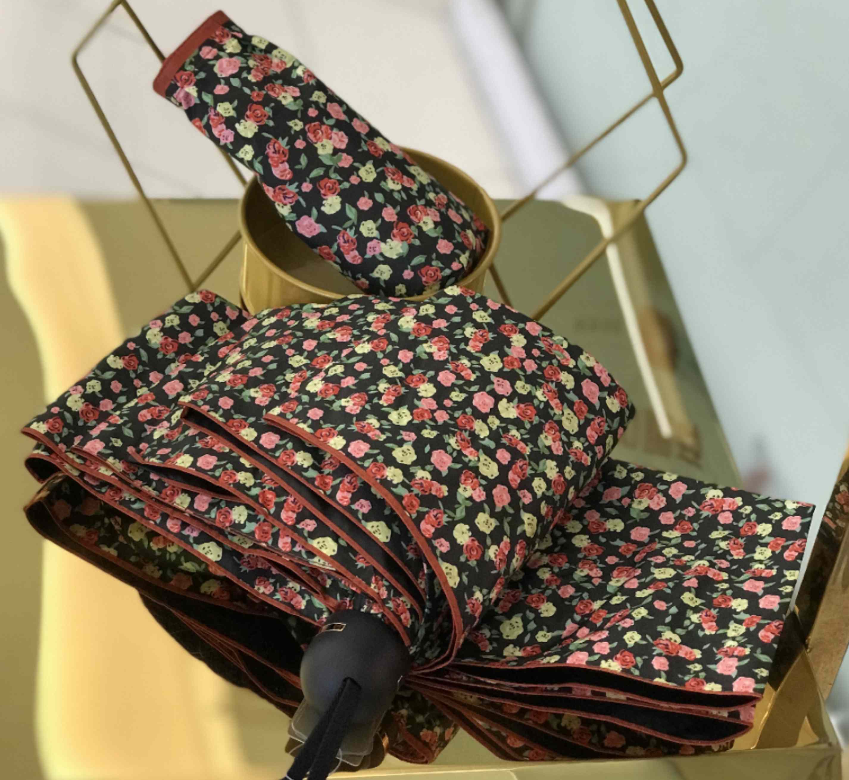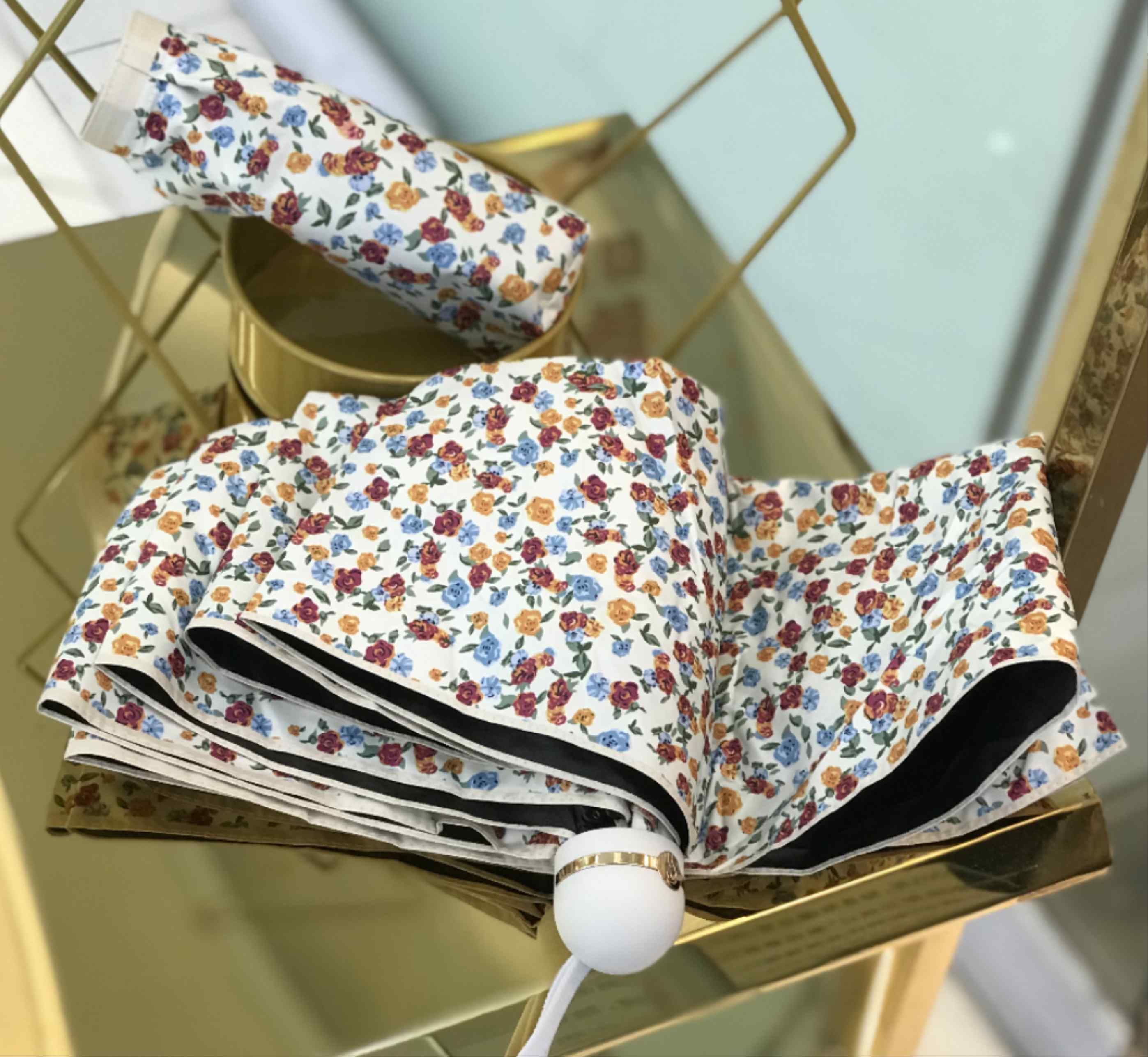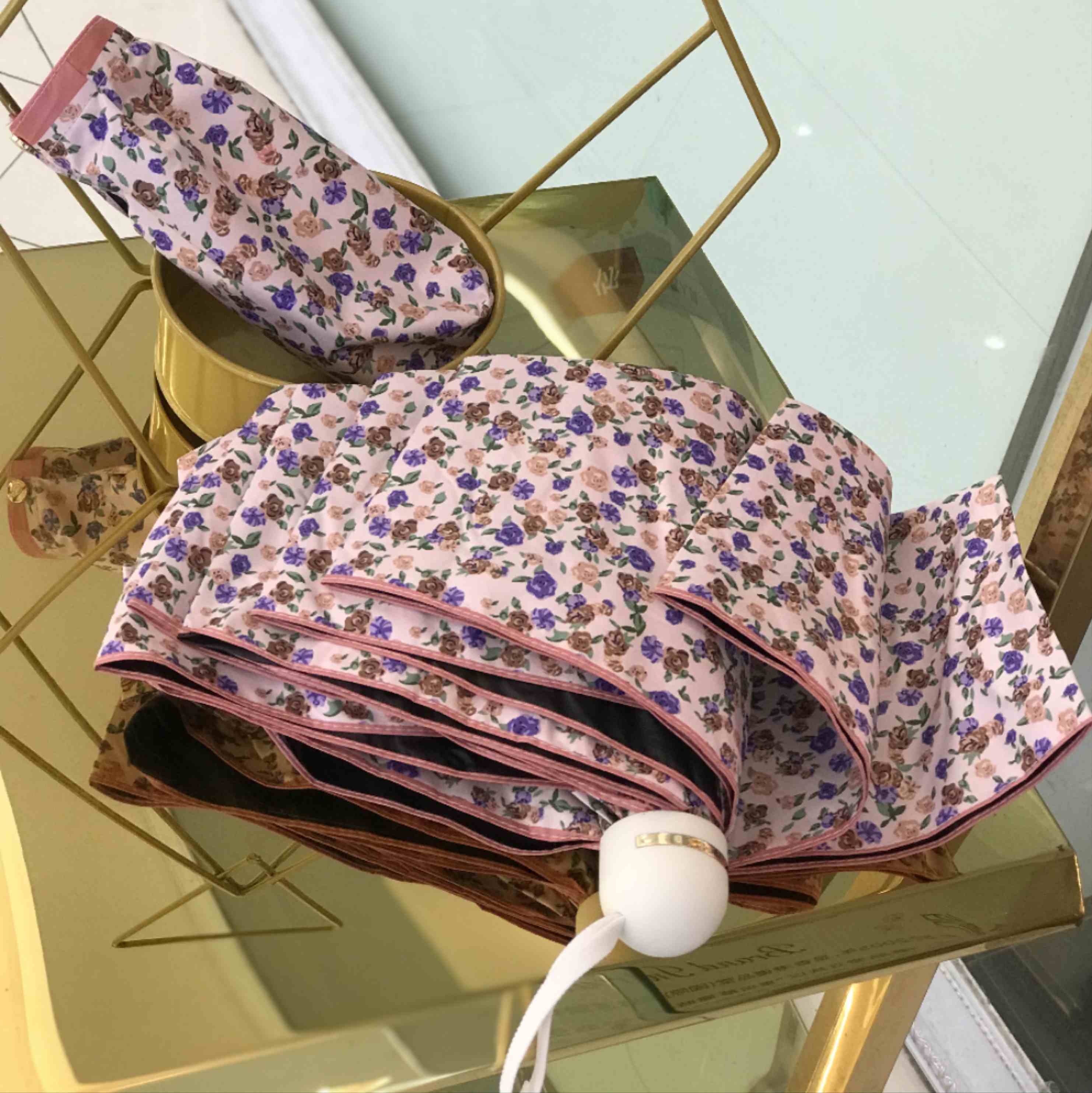 优品堂《烂漫花吻💋》三折超轻防紫外线伞
