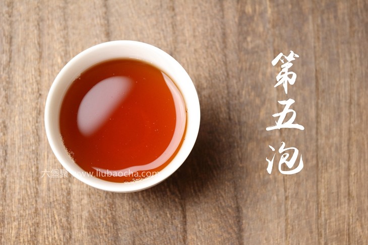 第五泡:汤色变浅,橙黄色,陈香尚显,滋味较纯,尚润,清甜。
